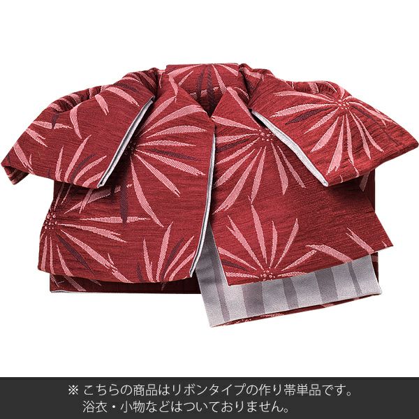 リボンタイプ 結び帯単品「赤紅色 花火」京都きもの町オリジナル 浴衣帯 作り帯 付け帯