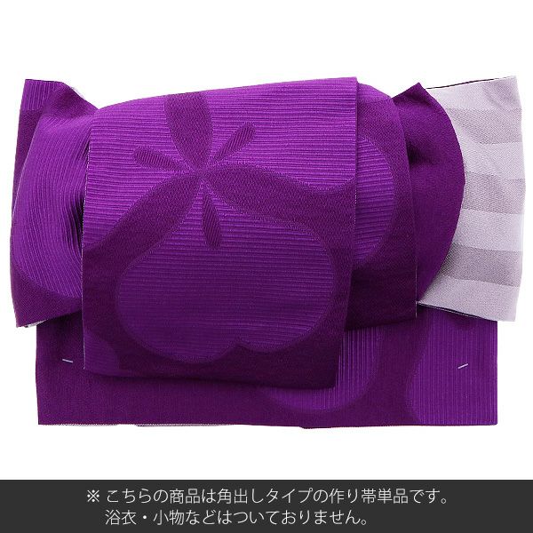 3. 角出し風タイプ 結び帯単品「バイオレット カタバミ」京都きもの町オリジナル 浴衣帯 作り帯 付け帯 【メール便不可】