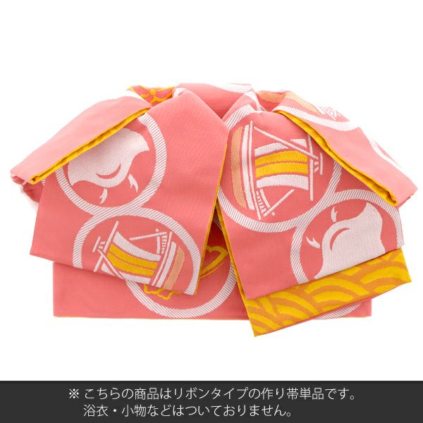 作り帯 京都きもの町オリジナル 浴衣帯 【Prices down】リボンタイプ 結び帯単品「珊瑚色 丸紋」京都きもの町オリジナル 浴衣帯 作り帯 付け帯 【メール便不可】ss2303ohs20