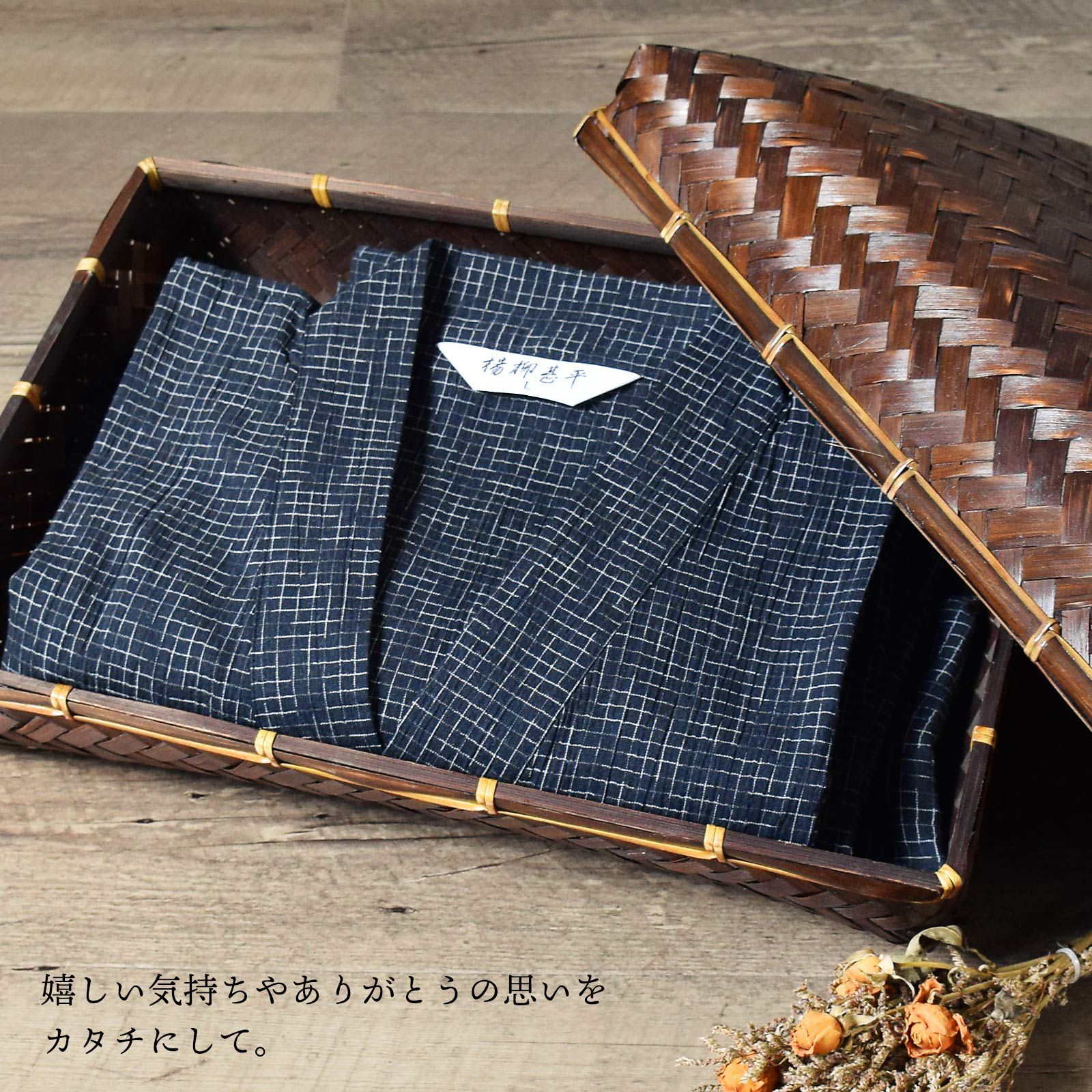 【商品内容】男性用甚平1点、竹籠と熨斗付き