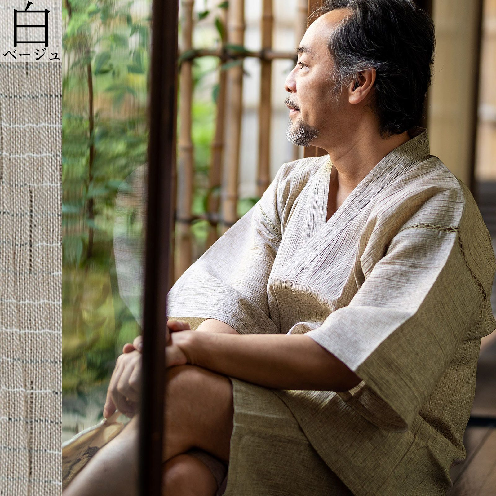日本らしさのあるくつろぎ着で、リラックスできてかつ粋な雰囲気。