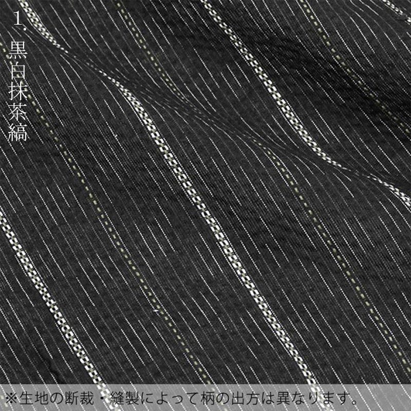 No.1「黒白抹茶縞」…やや浅い黒地に細くかすれたような白の縞とやや太めの白・抹茶の縞模様