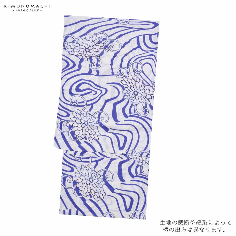 浴衣 メンズ 単品 「男浴衣 CANOA 生成り地に青色流水と花」 M L LL メンズ浴衣 男性浴衣 男性用浴衣 ゆかた yukata 【メール便不可】