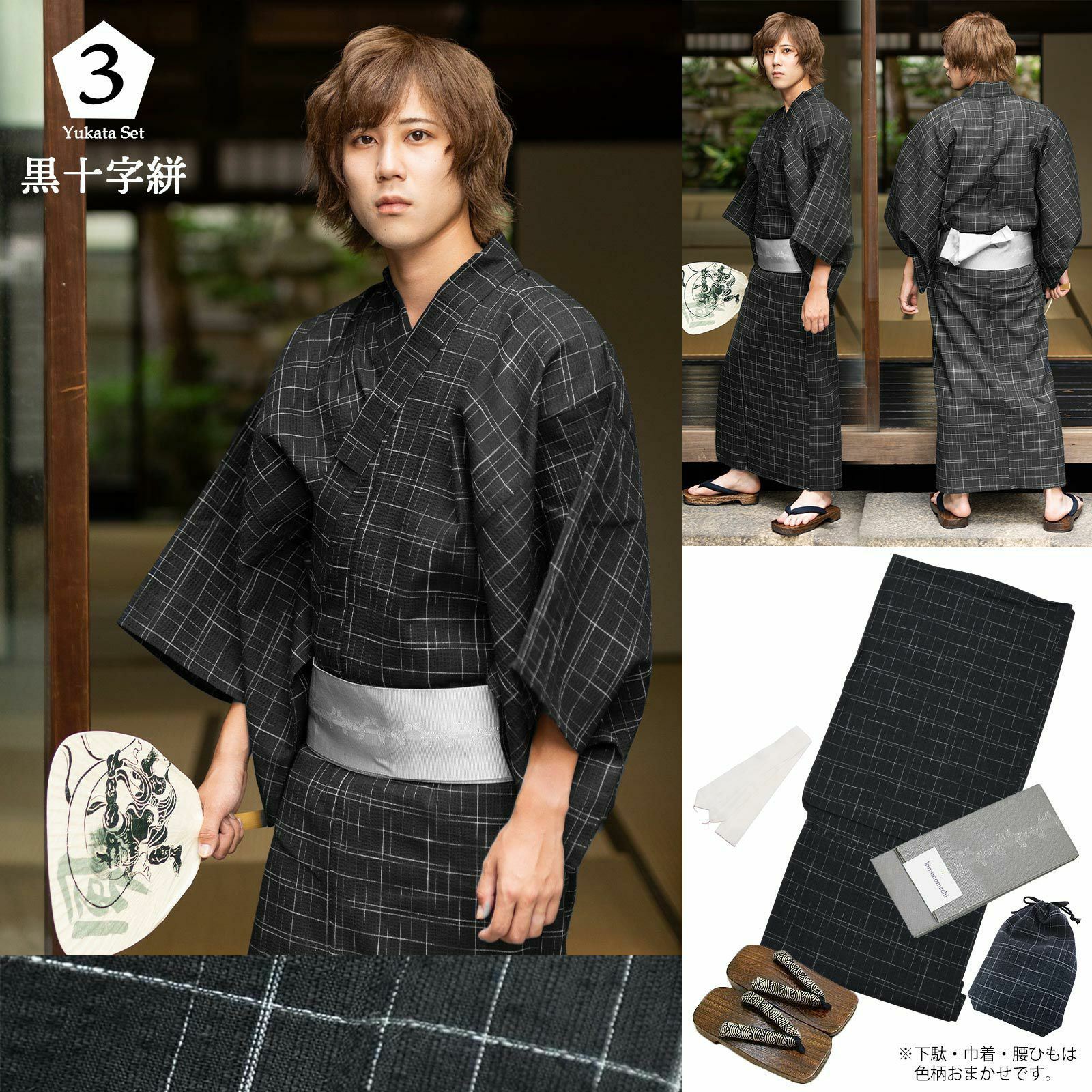 このメンズゆかたセットで、何もない状態からお出掛けできる浴衣姿に!