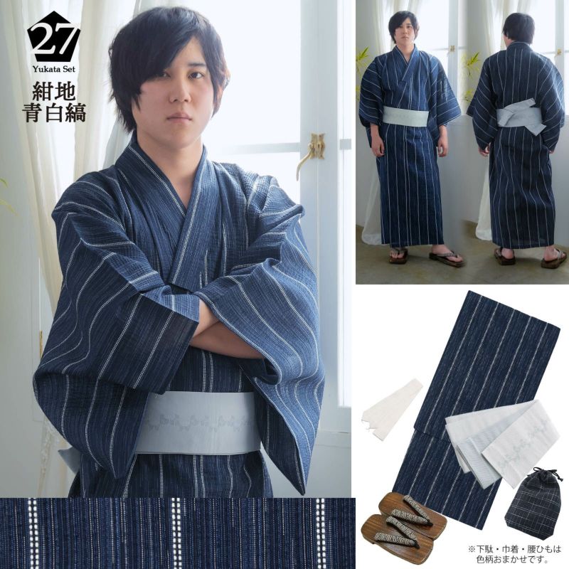 No.27「紺地青白縞」+角帯「白鼠色 束ね熨斗」
