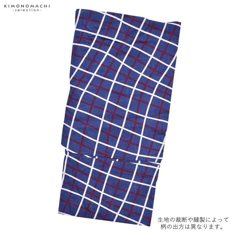 5. 【Prices down2】浴衣 メンズ 単品 「男浴衣 CANOA 青藍地にエンジと生成りのよろけ格子」 M L LL メンズ浴衣 男性浴衣 男性用浴衣 ゆかた yukata 【メール便不可】ss2506men10
