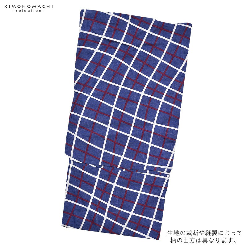 浴衣 メンズ 単品 「男浴衣 CANOA 青藍地にエンジと生成りのよろけ格子」 M L LL メンズ浴衣 男性浴衣 男性用浴衣 ゆかた yukata 【メール便不可】