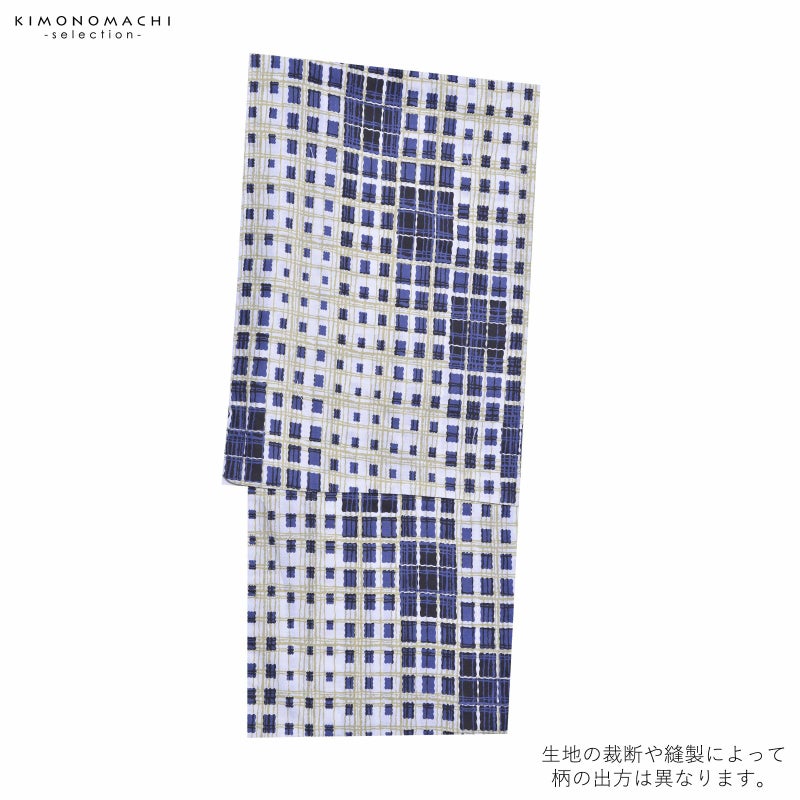 浴衣 メンズ 単品 「男浴衣 Men`s Yukata 白地に黒紺の変わり格子にヒワ色の三津五郎縞」 M L LL メンズ浴衣 男性浴衣 男性用浴衣 ゆかた yukata