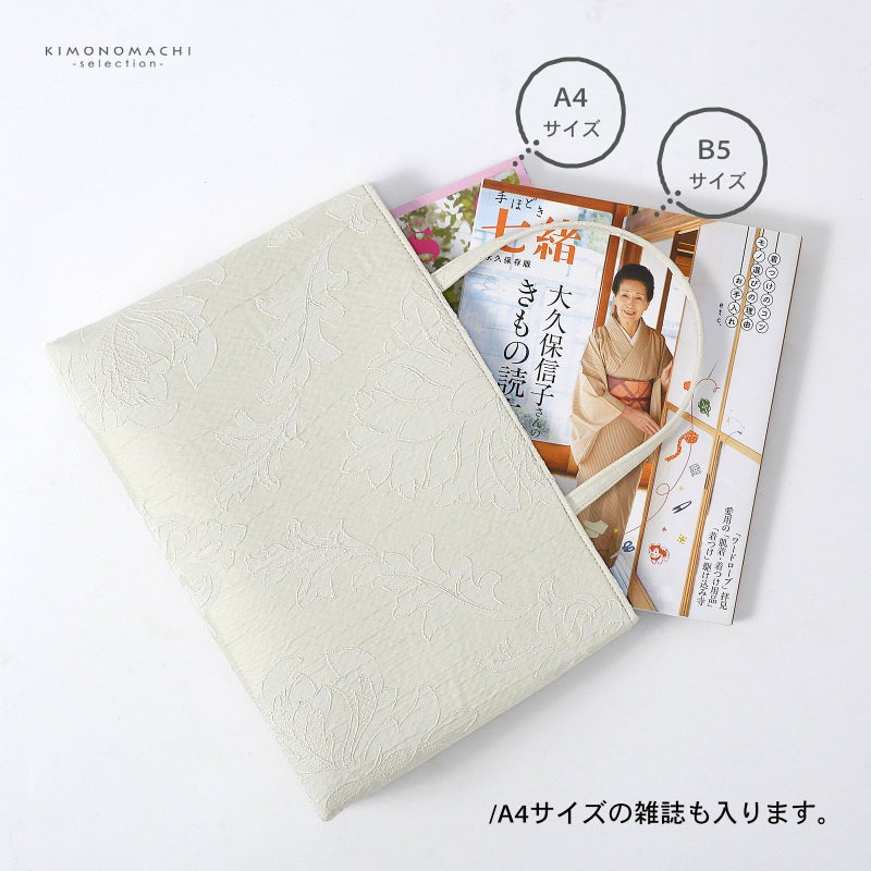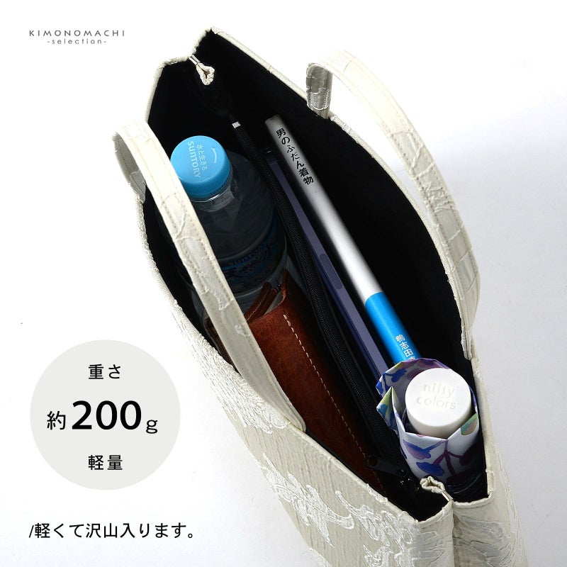 A4サイズの雑誌がすっぽり収まる収納力がありながら、約200gという軽さなので、長時間持っても負担が少なく、お稽古事や観劇、お仕事のサブバッグとして重宝します。