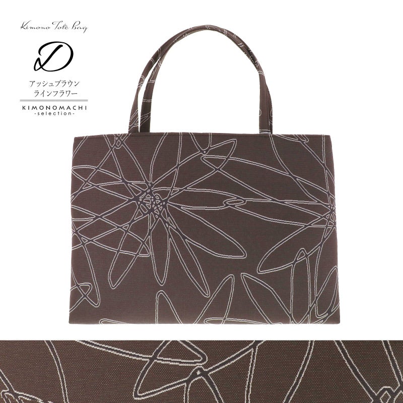 D.アッシュブラウン ラインフラワー:グレイッシュな茶色の地に、ベージュとこげ茶の線で表現された抽象的な花のような柄。内張りは黒。