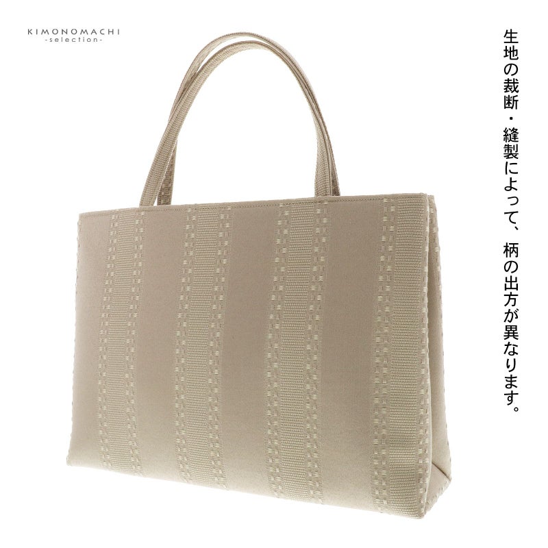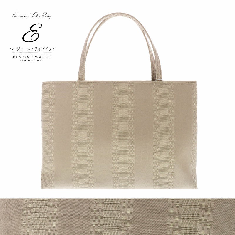 E.ベージュ ストライプドット:ベージュの地にやや浅いベージュと深いベージュのストライプ、織りで表現されたドット。内張りは黒。