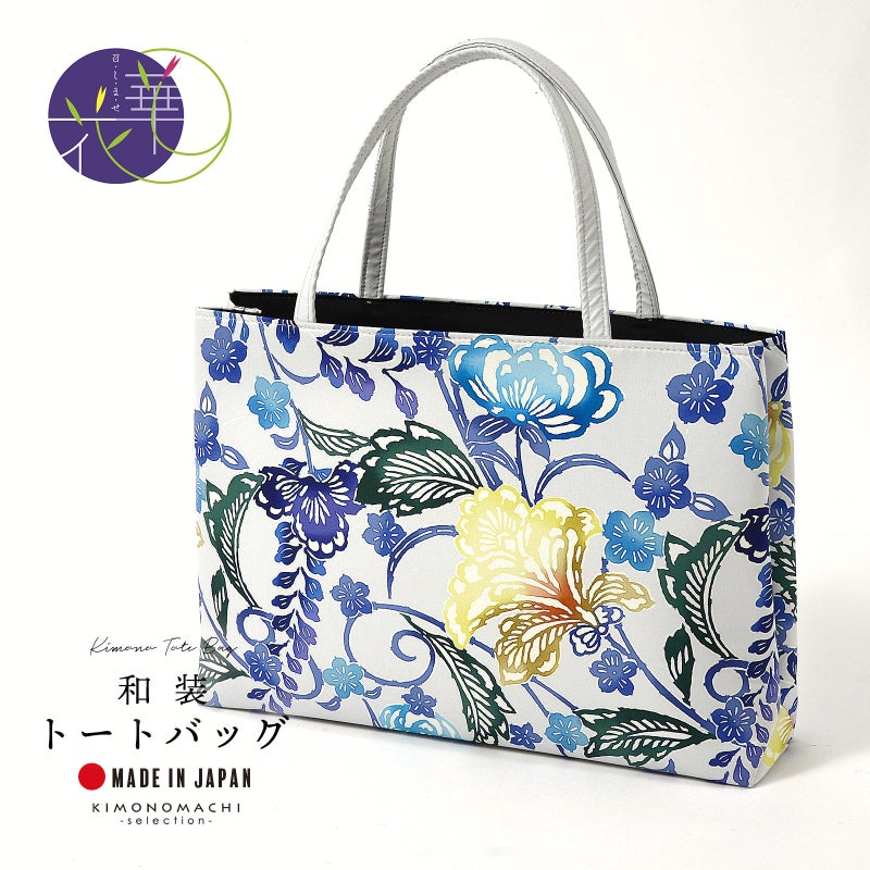4. 和装トートバッグ 単品 召しませ華「花そよぎ 白練色」日本製 チャック式ポケット付き お稽古バッグ A4サイズ 和装 洋装 ハンドバッグ 軽量【メール便不可】