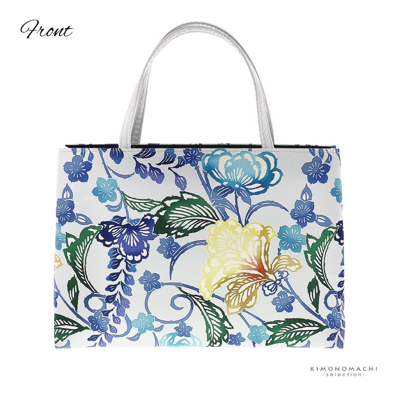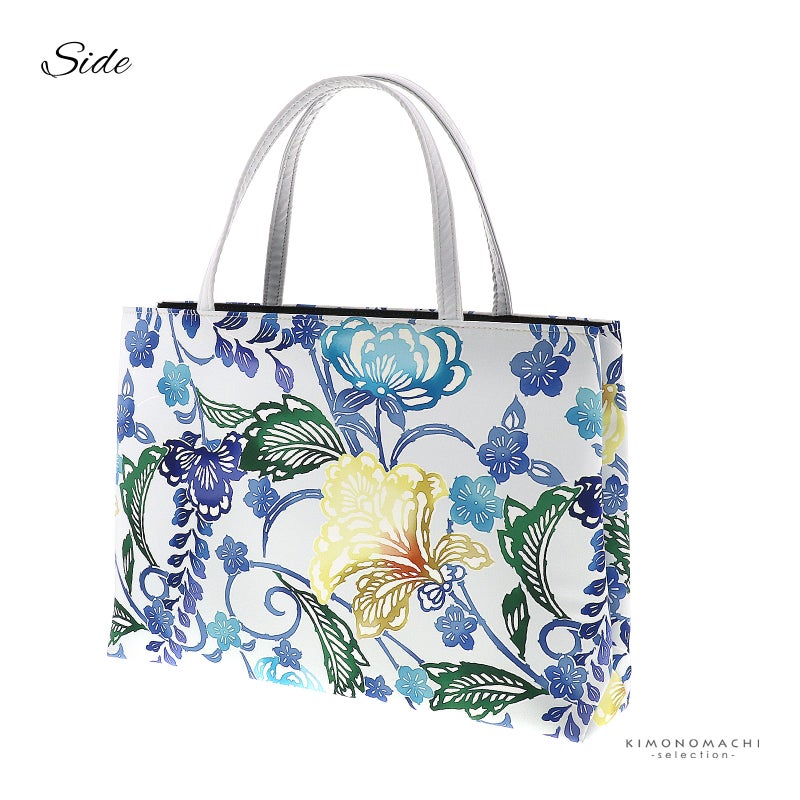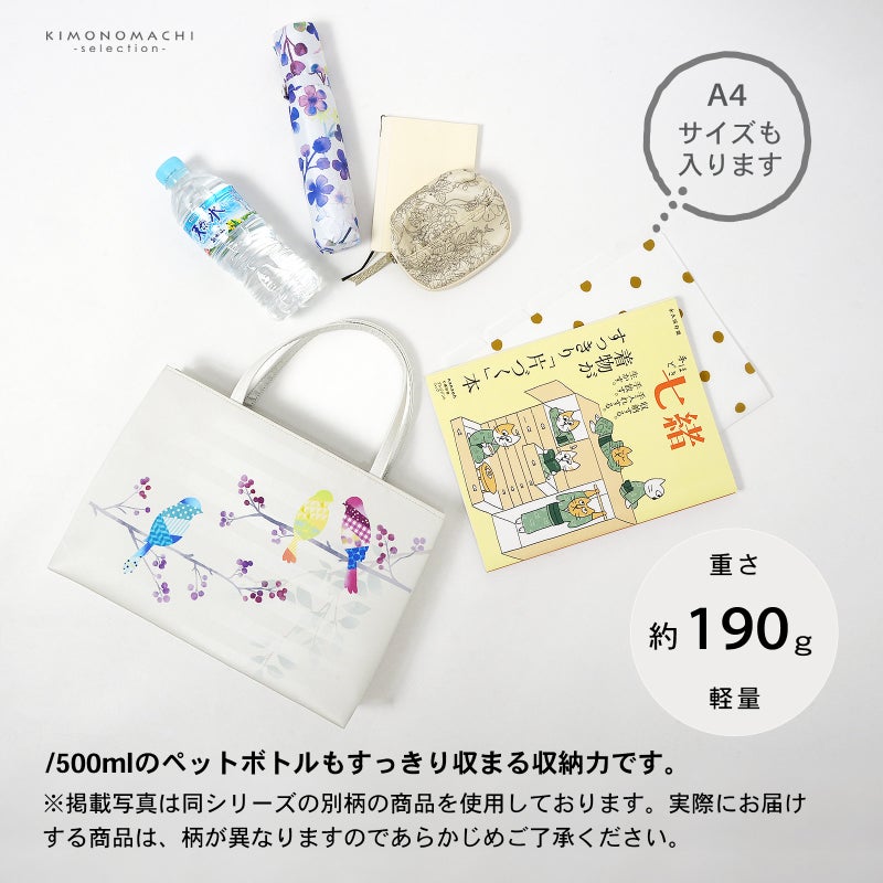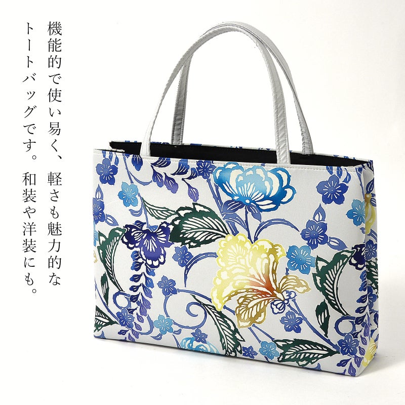 5. 和装トートバッグ 単品 召しませ華「花そよぎ 白練色」日本製 チャック式ポケット付き お稽古バッグ A4サイズ 和装 洋装 ハンドバッグ 軽量【メール便不可】