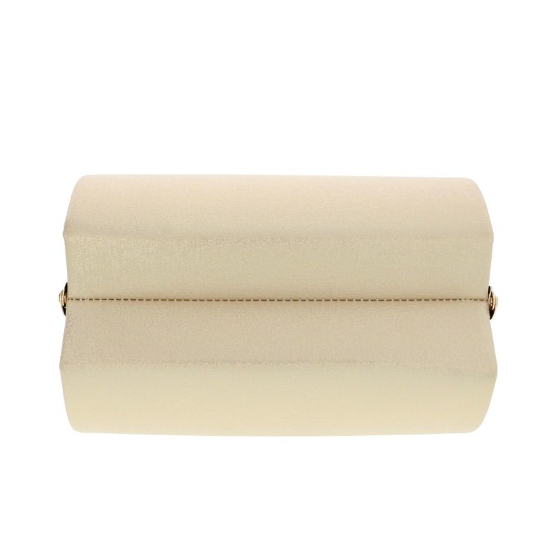 バッグの表裏は、金通しの明るいベージュ。全体的にシャンパンゴールドに輝きます。持ち手、側面はつやのある黒。口金は明るいゴールド。草履の鼻緒はシャンパンゴールド。草履の台は黒の天に、芯の巻はシャンパンゴールド。