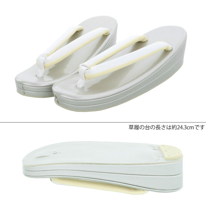 草履:台長さ24.3cm 台幅7.9cm 鼻緒幅1.9cm かかと高さ5.6cm