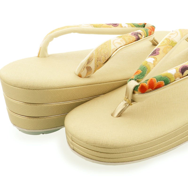 ※草履のサイズ表記について。草履のサイズは、製造メーカーによって、表記が異なる場合がございますので、きもの町では台の全長の実寸を測って、オリジナルの規定をつくっております。21cm台はSSサイズ、22cm台はSサイズ、23cm台はMサイズ、24cm台はLサイズ、25cm台はLLサイズとなっており、このサイズを基本としてサイズ表記いたしております。実際の箱、草履などの貼付しております表記と異なる場合がございます。予め、ご了承くださいませ