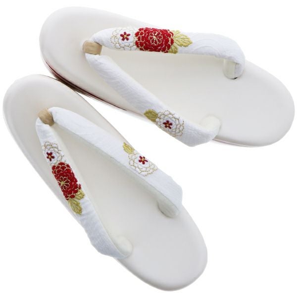 振袖、袴草履単品「白色 万寿菊刺繍」Sサイズ 卒業式の袴に 華やか 刺繍鼻緒 22cm、22.5cm、23cm Mo.186万寿菊草履S寸【メール便不可】<H>ss2512zbg10