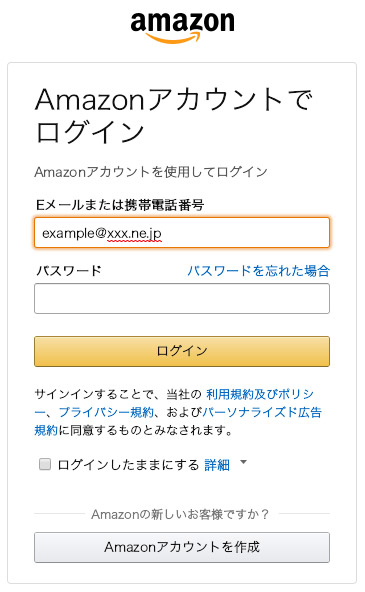 Amazonサインイン画面が表示されますので、Amazon.co.jpにご登録のアカウント情報でサインインしてください。
