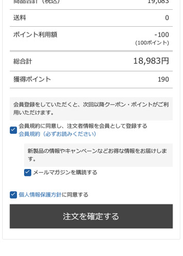 ⑤ お支払い金額をご確認の上、注文を確定するをクリックしてください。注文確定ボタンをクリックすると注文完了になります。