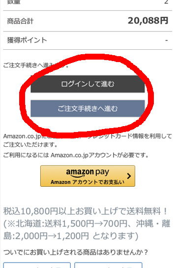 Amazonアカウントにログインしていない場合は、サインイン画面に移動します。Amazonにログインがお済みの場合は、ご注文手続き画面に移動します。