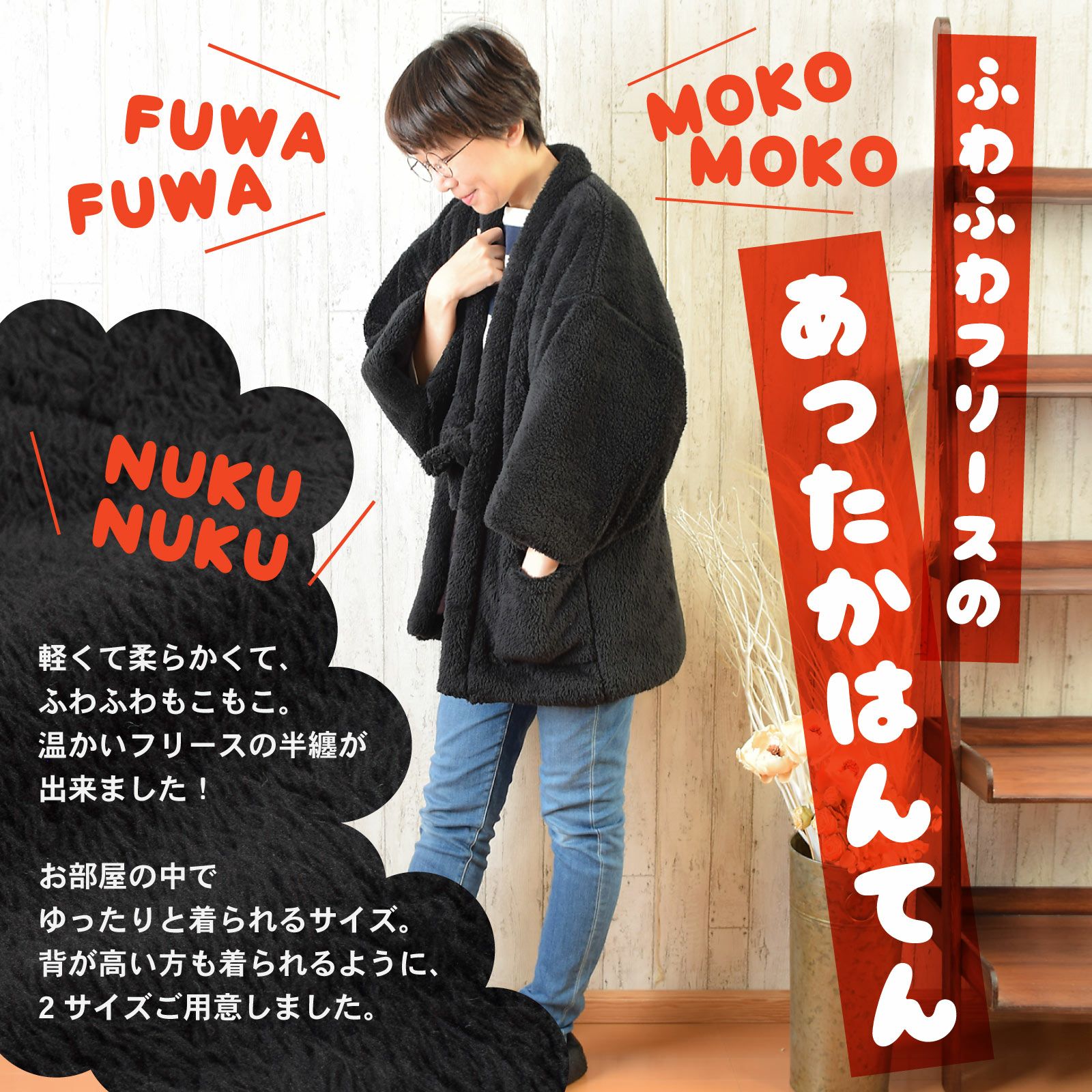 他の画像を見る 送料無料 ふわふわフリースのあったかはんてん 半纏 フリース半纏 レディース 単品「フリース ブラック」M/Lサイズ ふわふわ もこもこ あったか あたたか かわいい はんてん 部屋着 ルームウェア ちゃんちゃんこ 半天 袢纏 どてら 女性 節電 エコ ぽっかぽか【メール便不可】ss2512wkm15 通常販売価格 ¥ 4,400 のところ きもの町価格 ¥ 3,740 税込 販売期間 2026/02/05 18:00 〜 2026/02/19 17:59 詳細を見る お気に入りに登録する