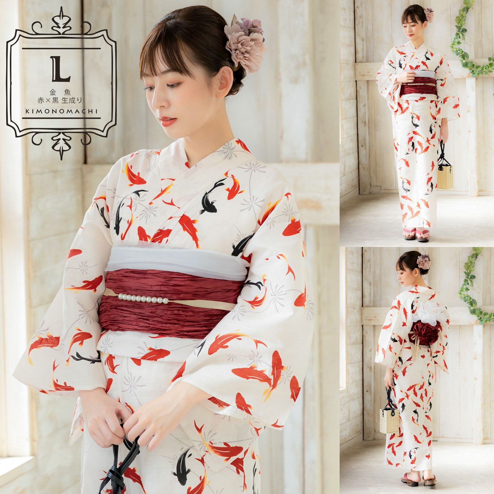 他の画像を見る 送料無料 コーディネート済の浴衣と帯におまかせ下駄がついたレディース浴衣セット 浴衣セット レディース 浴衣3点セット(浴衣+帯+おまかせ下駄)「檸檬・白百合・金魚・万年青」S/F/TL/LLサイズ 綿 きもの町オリジナル 大人 可愛い 個性的 レトロモダン 花火大会 夏祭り 女性用浴衣 女性浴衣 ゆかた yukata【送料無料】【メール便不可】 通常販売価格 ¥ 15,400 のところ きもの町価格 ¥ 9,350 税込 カートに入れる お気に入りに登録する