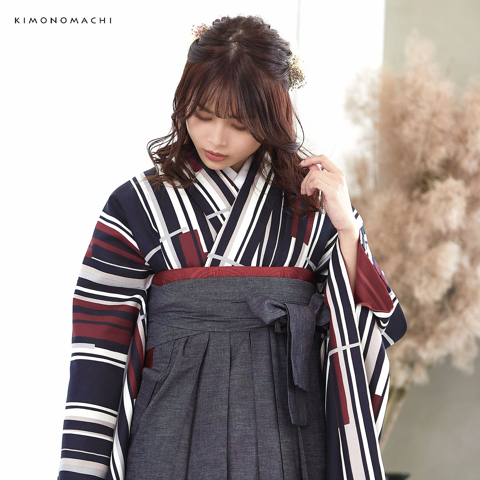 他の画像を見る 送料無料 卒業式に 二尺袖袴セット 卒業式 袴 レディース (卒業式応援75%SALE 2/19迄)袴 セット 卒業式 女性 4点セット「二尺袖:ラインカラー 灰色×赤+袴:デニム ブラック+袴下帯:レッド 麻の葉+襦袢」卒業式 女性 レディース お仕立て上がり 袴セット 二尺袖着物セット 着物 二尺着物 袴【メール便不可】 通常販売価格 ¥ 38,500 のところ きもの町価格 ¥ 28,600 税込 販売期間 2026/02/05 18:00 〜 2026/02/19 17:59 在庫切れ カートに入れる お気に入りに登録する