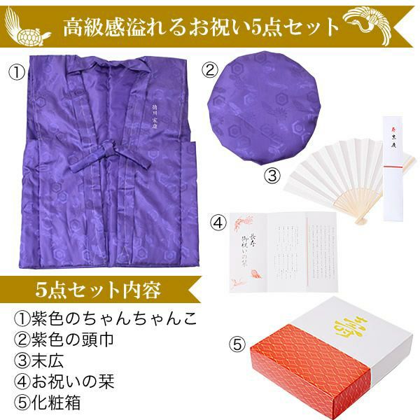 他の画像を見る 送料無料 【古稀・喜寿・傘寿・卒寿】長寿のお祝いに 紫のちゃんちゃんこと頭巾のセット 【古稀・喜寿・傘寿・卒寿祝い】 紫 長寿祝い ちゃんちゃんこセット お祝いセット ちゃんちゃんこと大黒頭巾と末広にお祝いの栞と化粧箱の5点セット【送料無料】【メール便不可】 きもの町価格 ¥ 2,970 税込 詳細を見る お気に入りに登録する