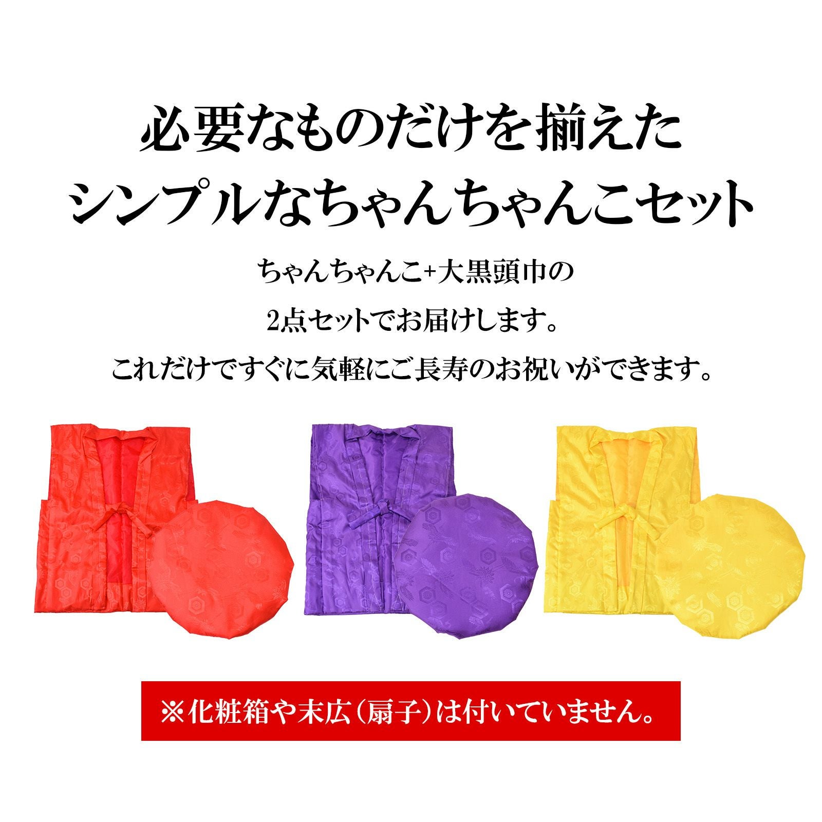 他の画像を見る 送料無料 長寿のお祝い・敬老の日ギフトに ちゃんちゃんこ、頭巾、末広、栞、化粧箱のセット 長寿祝い ちゃんちゃんこ 5点セット 「お祝いセット 赤・紫・黄色」 還暦 古希 喜寿 傘寿 米寿 卒寿 赤色 紫色 黄色 鶴と亀 中綿入り 御祝い 化粧箱入り ラッピング無料 熨斗無料 60歳 61歳 70歳 77歳 80歳 88歳 90歳 敬老の日 ギフト プレゼント【送料無料】【メール便不可】 きもの町価格 ¥ 3,850 税込 詳細を見る お気に入りに登録する