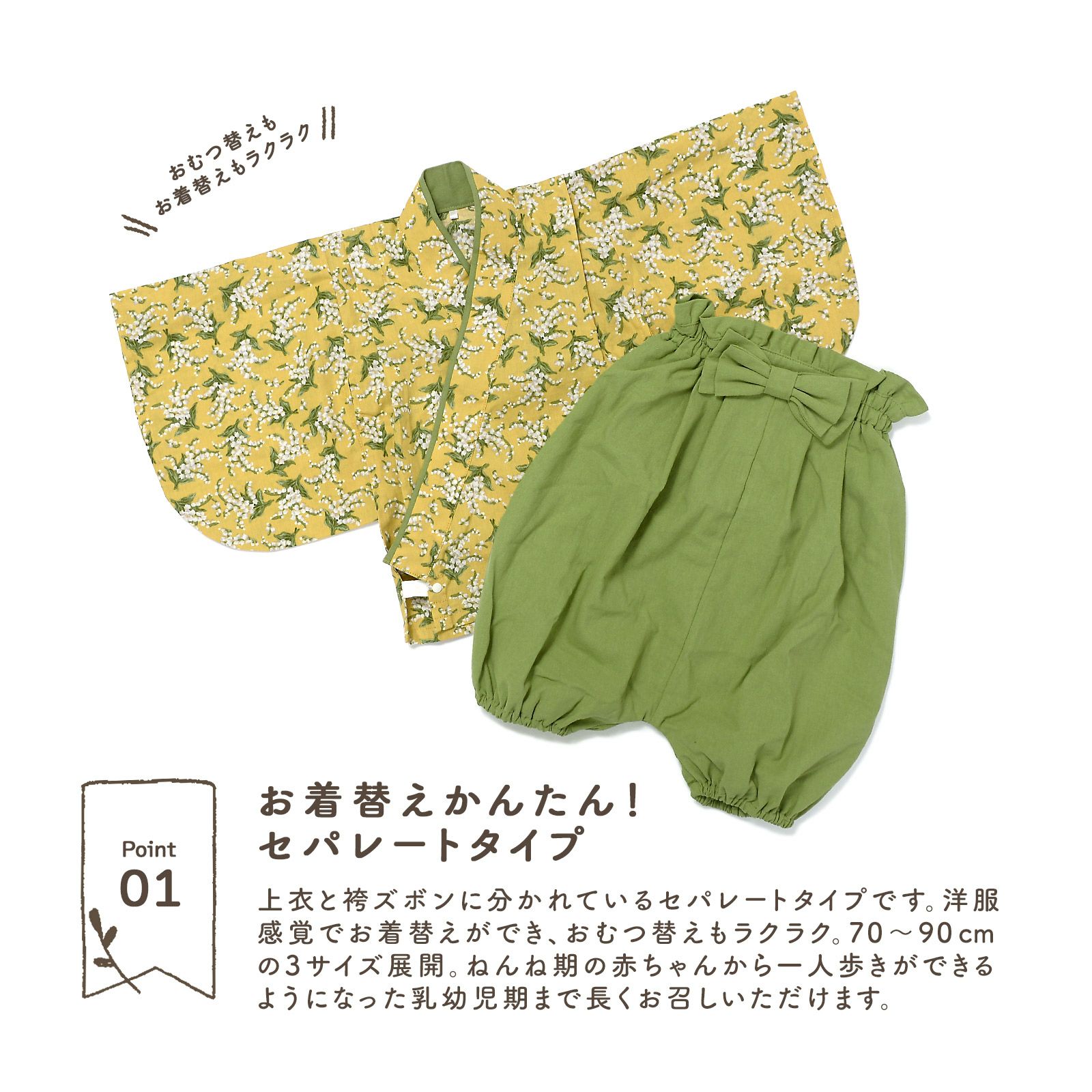 他の画像を見る 送料無料 大切な日を華やかに彩るベビー袴セット ベビー 袴セット 男の子 女の子 petite liberte プチリベルテ「すずらん イエロー×グリーン」70cm/80cm/90cm カバーオール ベビー服 子供服 新生児 ひな祭り お食い初め お宮参り【メール便不可】 きもの町価格 ¥ 4,510 税込 詳細を見る お気に入りに登録する