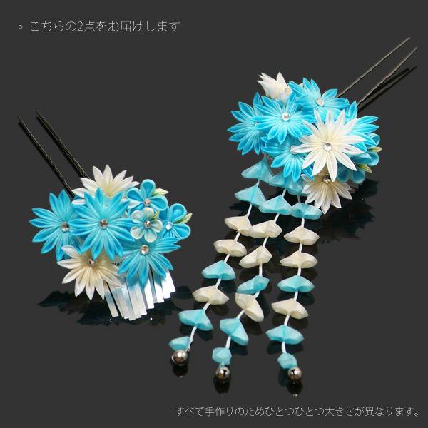 他の画像を見る 送料無料 成人式の振袖にも 華やかな髪飾り (卒業式応援75%SALE 2/19迄)【Prices down4】つまみ細工髪飾り2点セット「水色ぼかし×白色ぼかし 剣つまみのお花、房飾り」髪飾りセット 卒業式の袴にも 振袖 簪 成人式 (404002)【メール便不可】ss2512wkk25 通常販売価格 ¥ 4,950 のところ きもの町価格 ¥ 3,465 税込 販売期間 2026/02/05 18:00 〜 2026/02/19 17:59 カートに入れる お気に入りに登録する