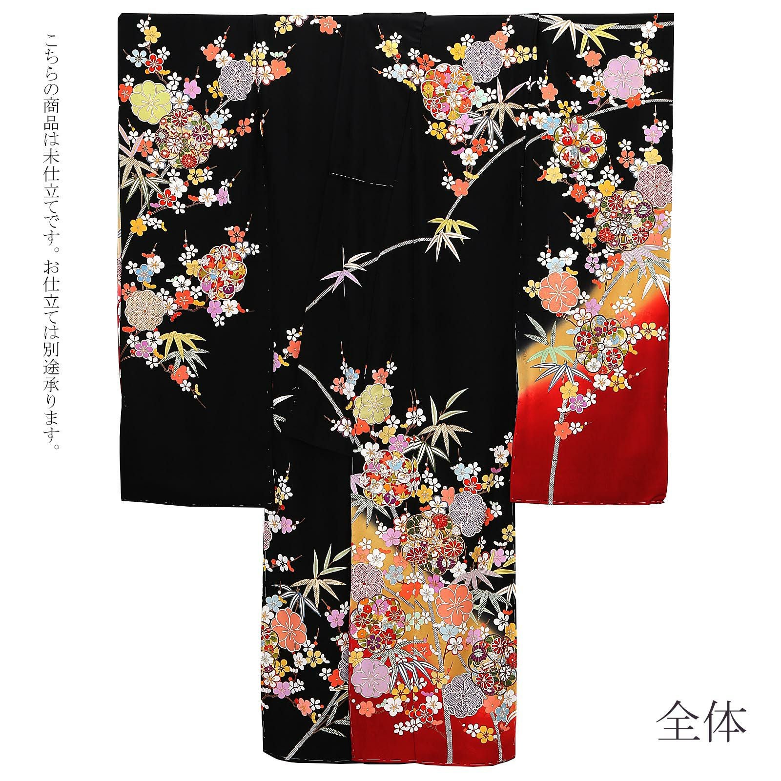 他の画像を見る 送料無料 成人式や結婚式などに 華やかな未仕立て振袖単品 (卒業式応援Point10倍 2/19迄)未仕立て 振袖 単品「黒地 八重梅に竹」日本製 仮絵羽 振り袖 正絹 着物 レディース 成人式 結婚式 結納 パーティー 晴れ着【メール便不可】 きもの町価格 ¥ 682,000 税込 販売期間 2026/02/05 18:00 〜 2026/02/19 17:59 カートに入れる お気に入りに登録する