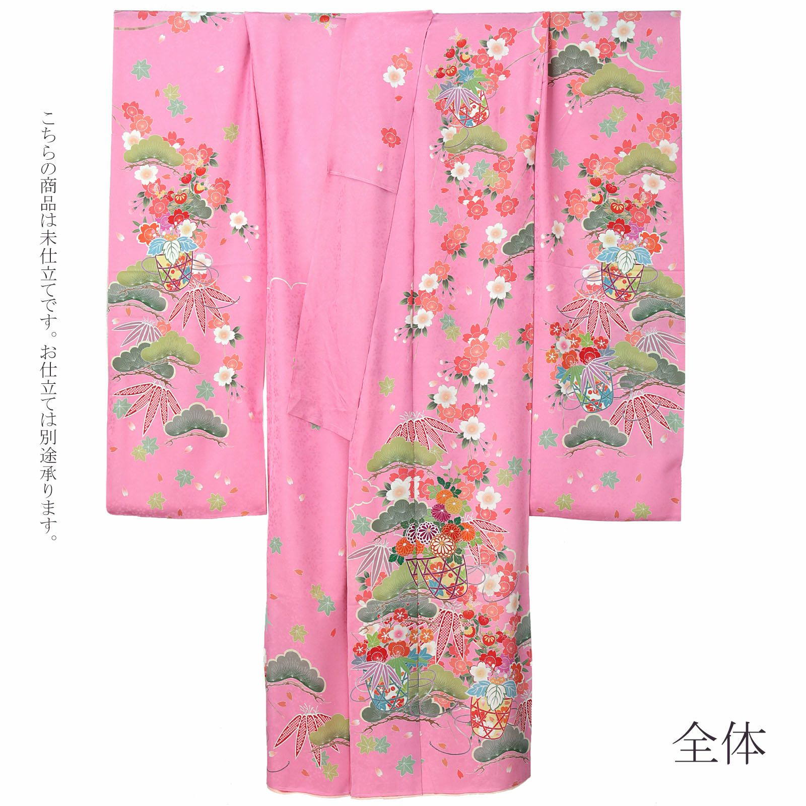 他の画像を見る 送料無料 成人式や結婚式などに 華やかな未仕立て振袖単品 (卒業式応援Point10倍 2/19迄)未仕立て 振袖 単品 「ピンク 松に桜、花籠」 仮絵羽 振り袖 正絹 着物 レディース 成人式 結婚式 結納 パーティー 晴れ着 【メール便不可】 きもの町価格 ¥ 196,900 税込 販売期間 2026/02/05 18:00 〜 2026/02/19 17:59 カートに入れる お気に入りに登録する