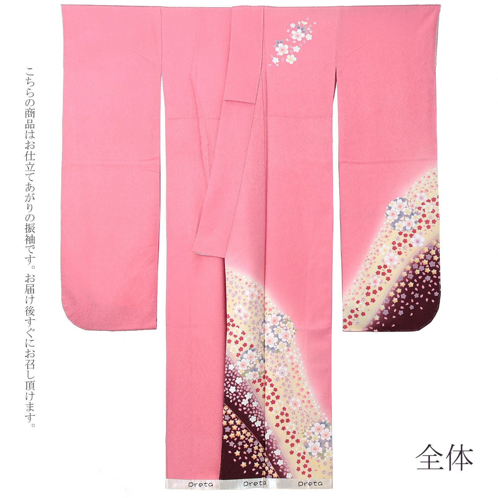 他の画像を見る 送料無料 成人式や結婚式などに 華やかな未仕立て振袖単品 (卒業式応援Point10倍 2/19迄)未仕立て 振袖 単品「ピンク色 霞に松、菊、貝桶」日本製 仮絵羽 振り袖 正絹 着物 レディース 成人式 結婚式 結納 パーティー 晴れ着【メール便不可】 きもの町価格 ¥ 352,000 税込 販売期間 2026/02/05 18:00 〜 2026/02/19 17:59 カートに入れる お気に入りに登録する