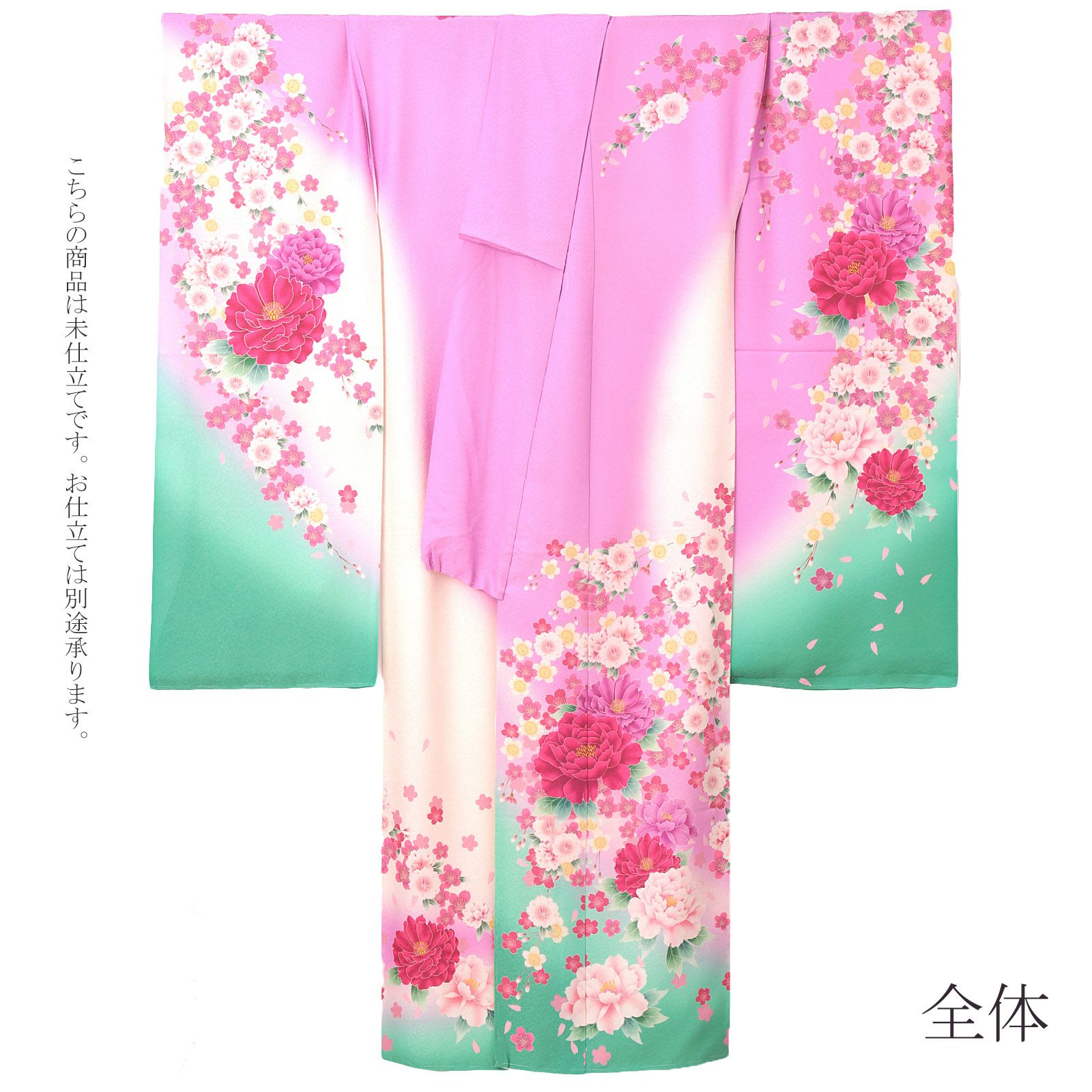 他の画像を見る 送料無料 成人式や結婚式などに 華やかな未仕立て振袖単品 (卒業式応援Point10倍 2/19迄)未仕立て 振袖 単品 「ピンク×ミントグリーン 牡丹」 仮絵羽 振り袖 正絹 着物 レディース 成人式 結婚式 結納 パーティー 晴れ着 【メール便不可】 きもの町価格 ¥ 136,400 税込 販売期間 2026/02/05 18:00 〜 2026/02/19 17:59 カートに入れる お気に入りに登録する