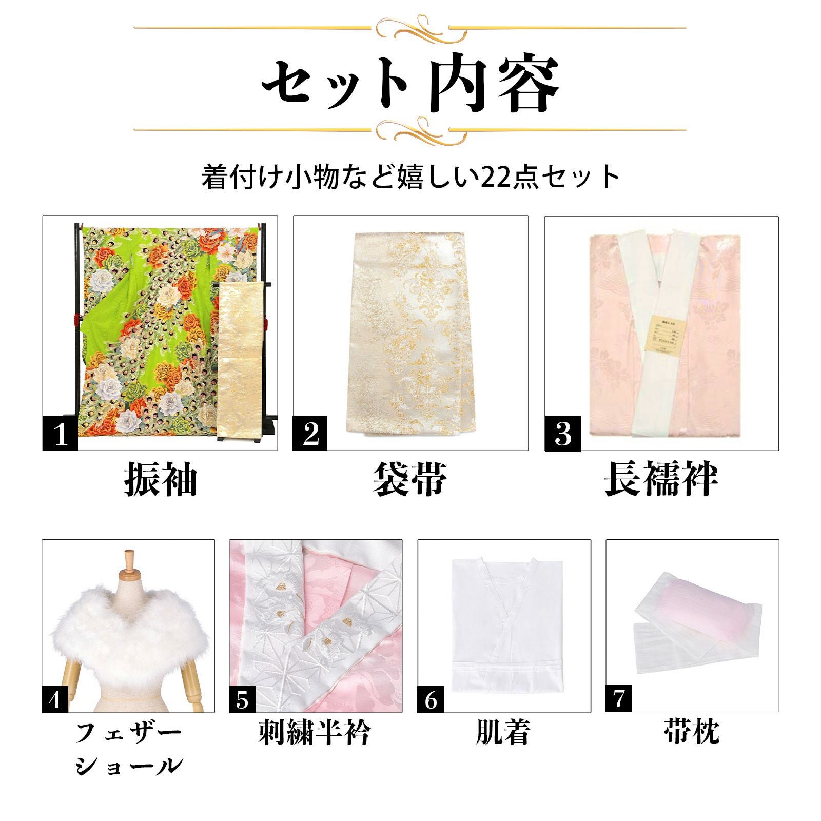 他の画像を見る 送料無料 豪華購入特典あり 振袖・袋帯・長襦袢・着付け小物のセット お仕立てつき (卒業式応援Point10倍 2/19迄)未仕立て 振袖 22点セット「Lako Kula 黄緑 バラと孔雀羽根」仮絵羽 振り袖 正絹 着物 ブランド振袖 成人式 結婚式 結納 パーティー 晴れ着 【メール便不可】 きもの町価格 ¥ 498,000 税込 販売期間 2026/02/05 18:00 〜 2026/02/19 17:59 詳細を見る お気に入りに登録する