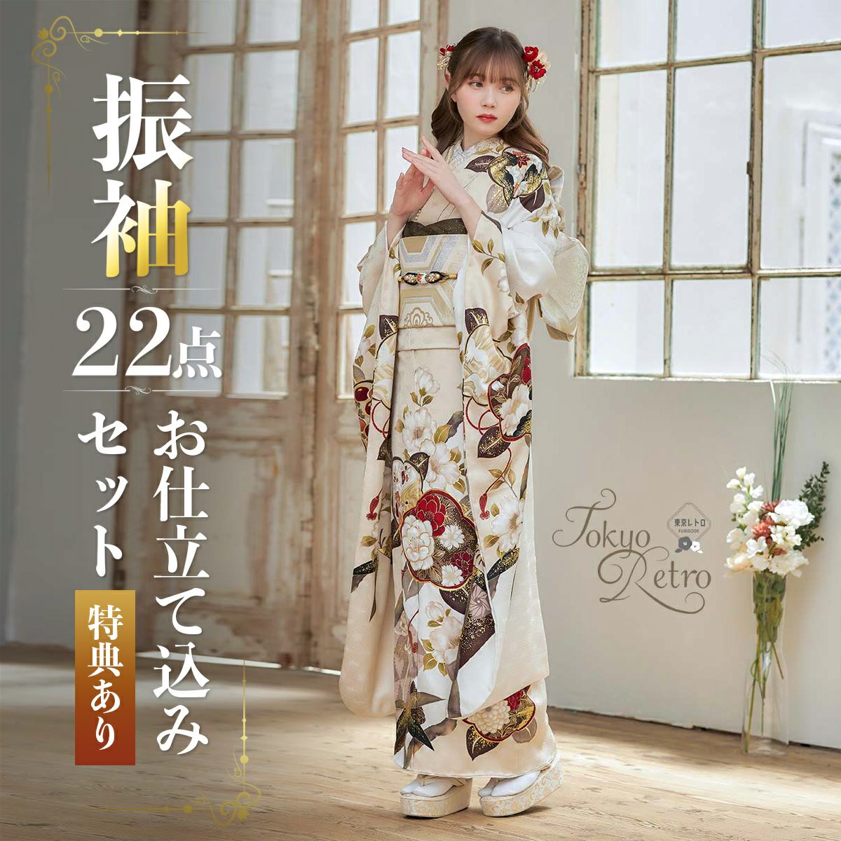 他の画像を見る 送料無料 豪華購入特典あり 振袖・袋帯・長襦袢・着付け小物のセット お仕立てつき 未仕立て 振袖 22点セット「東京レトロ サンドベージュ 花丸文に桜」仮絵羽 振り袖 正絹 着物 ブランド振袖 成人式 結婚式 結納 パーティー 晴れ着 【メール便不可】 きもの町価格 ¥ 418,000 税込 在庫切れ 詳細を見る お気に入りに登録する