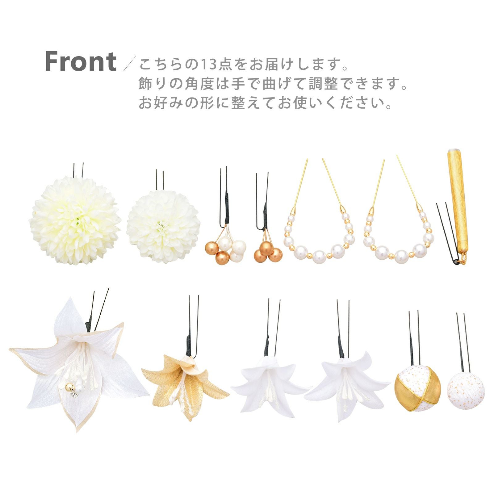 他の画像を見る 成人式の振袖に、卒業式の袴にも 華やかな振袖用髪飾り (卒業式応援75%SALE 2/19迄)髪飾り 成人式 つまみ髪飾り Uピン 13点セット 「フラワーポット リリー 白 No.8354」 振袖用髪飾り お花髪飾り 成人式 卒業式 結婚式 着物 【メール便不可】<H> 通常販売価格 ¥ 10,230 のところ きもの町価格 ¥ 8,695 税込 販売期間 2026/02/05 18:00 〜 2026/02/19 17:59 カートに入れる お気に入りに登録する