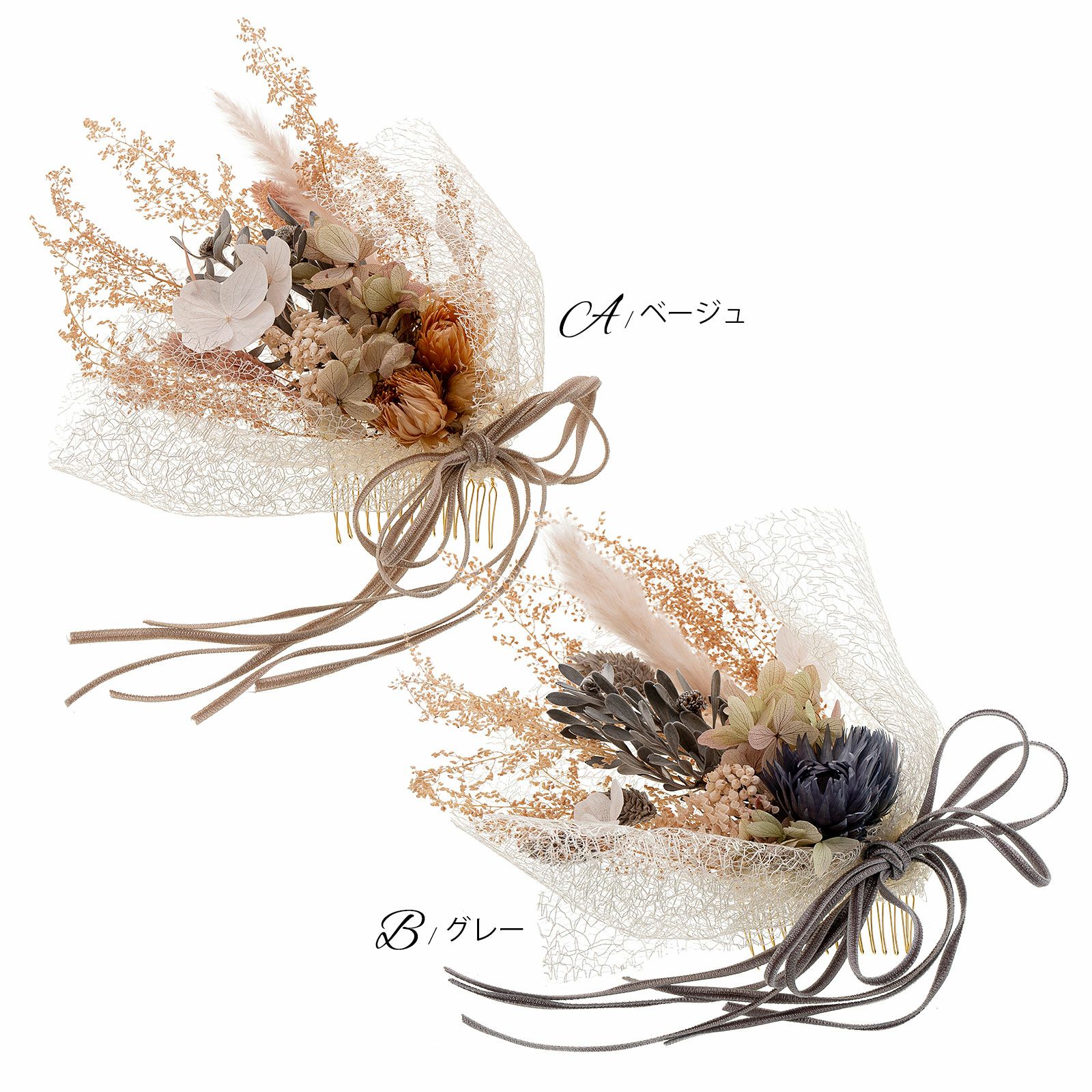 他の画像を見る 成人式の振袖に、卒業式の袴にも 華やかな振袖用髪飾り (卒業式応援75%SALE 2/19迄)髪飾り 成人式 花髪飾り フラワーコーム「シャンペトルブーケ ベージュ・グレー」振袖用髪飾り お花髪飾り プリザーブドフラワー 成人式 卒業式 結婚式 着物【メール便不可】 通常販売価格 ¥ 9,900 のところ きもの町価格 ¥ 8,415 税込 販売期間 2026/02/05 18:00 〜 2026/02/19 17:59 カートに入れる お気に入りに登録する