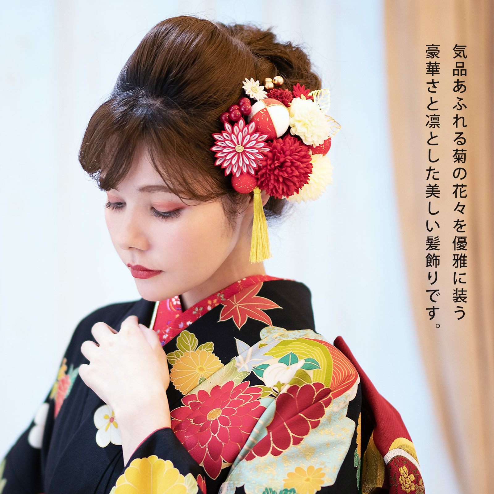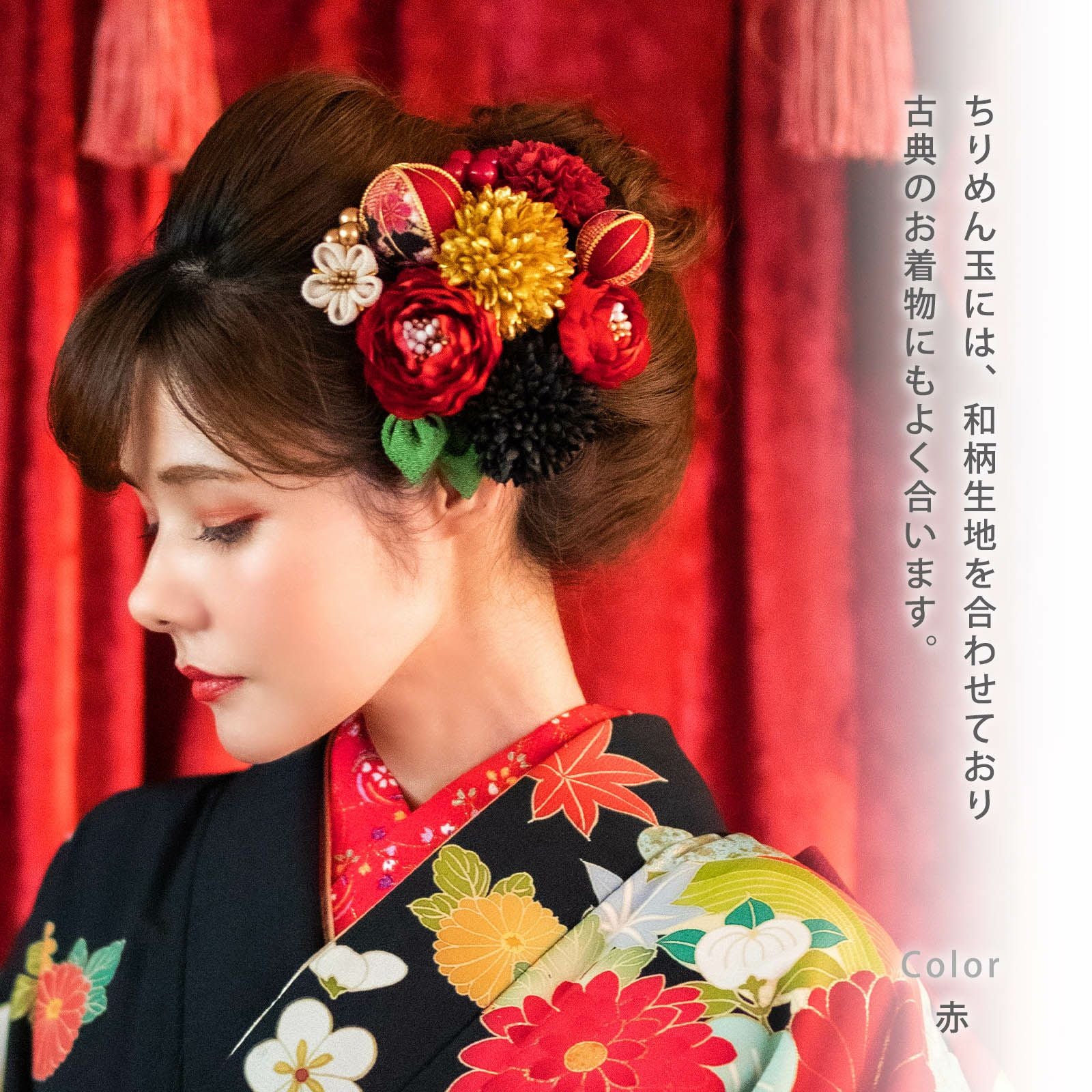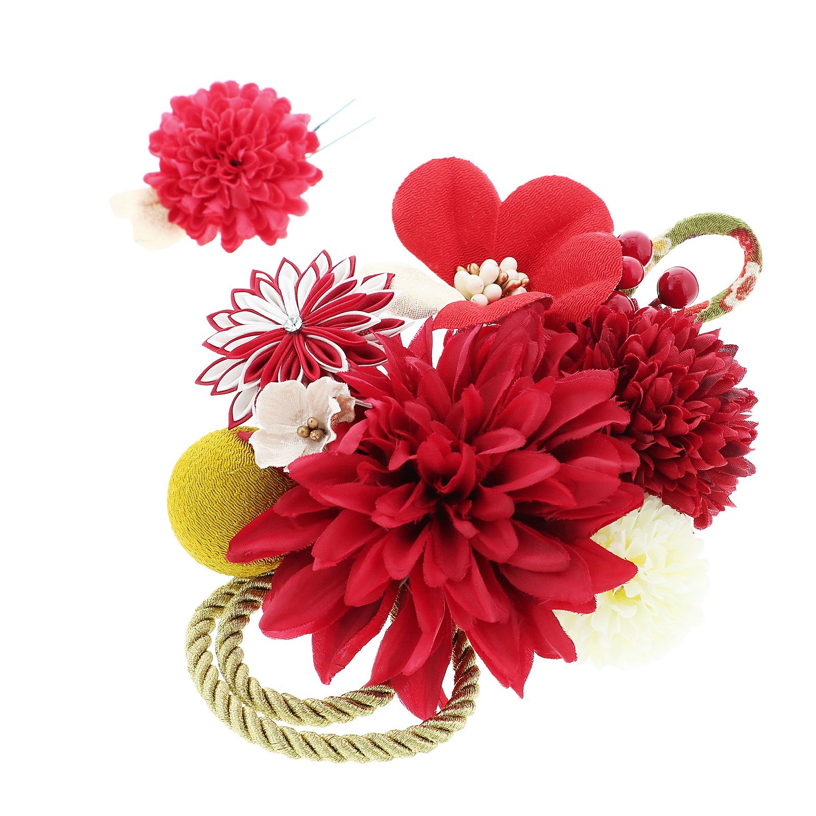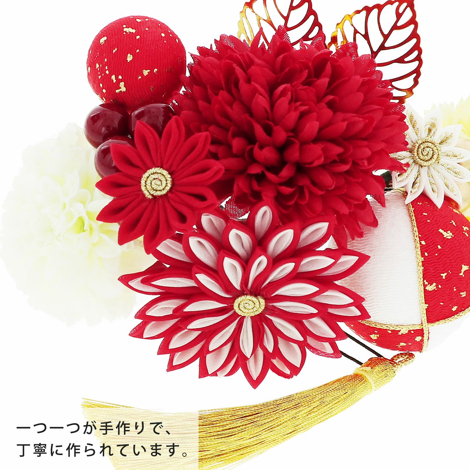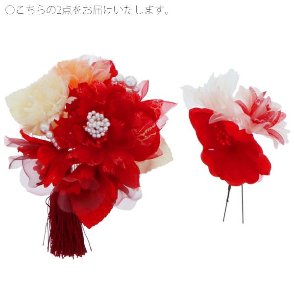 他の画像を見る 成人式の振袖に、卒業式の袴にも 華やかな振袖用髪飾り (卒業式応援75%SALE 2/19迄)髪飾り 成人式 花髪飾り コーム Uピン 2点セット 「マムとタッセル レッド No.53783」 振袖用髪飾り お花髪飾り つまみ細工 成人式 卒業式 結婚式 着物 日本製 【メール便不可】<H>ss2512wkk10 通常販売価格 ¥ 10,230 のところ きもの町価格 ¥ 8,695 税込 販売期間 2026/02/05 18:00 〜 2026/02/19 17:59 カートに入れる お気に入りに登録する