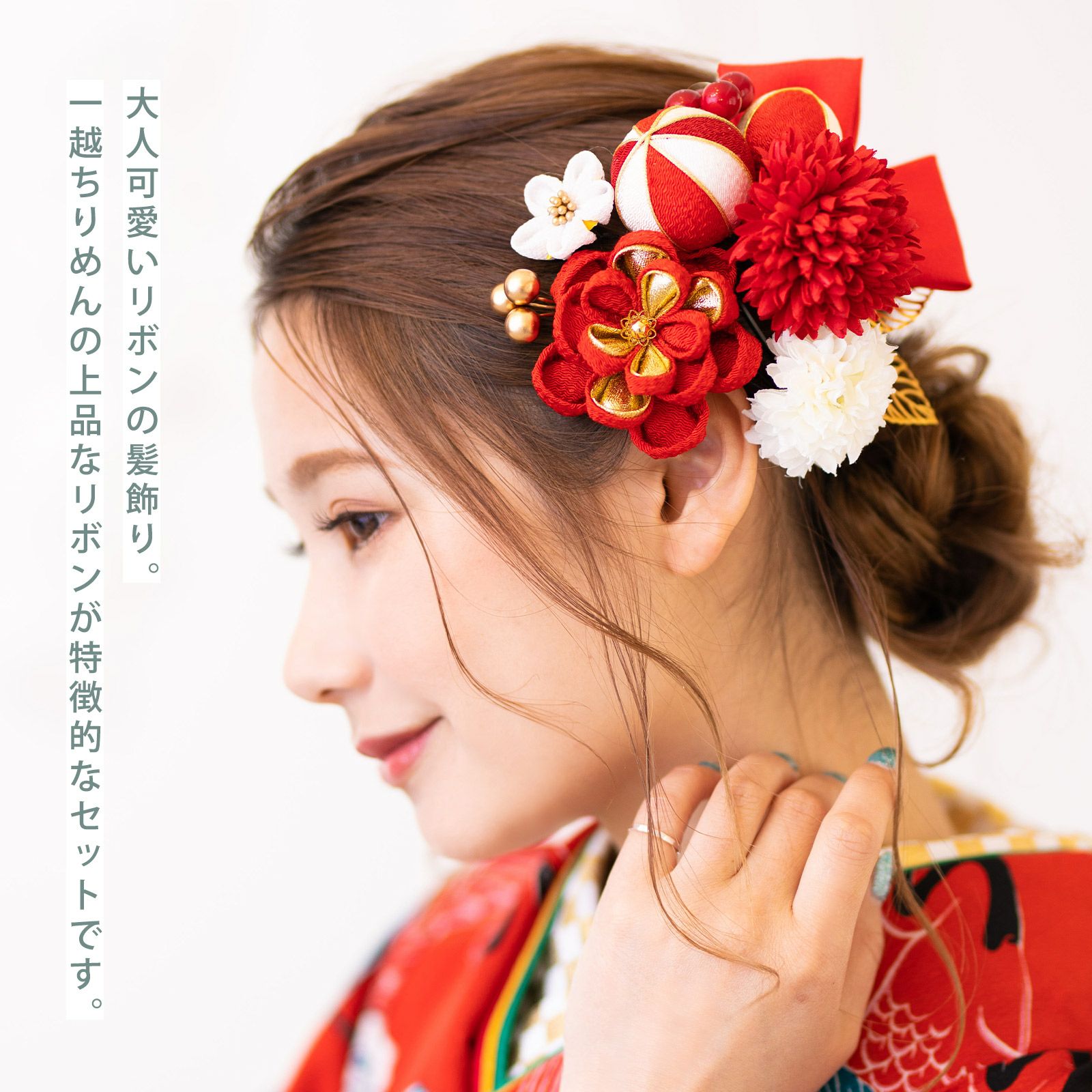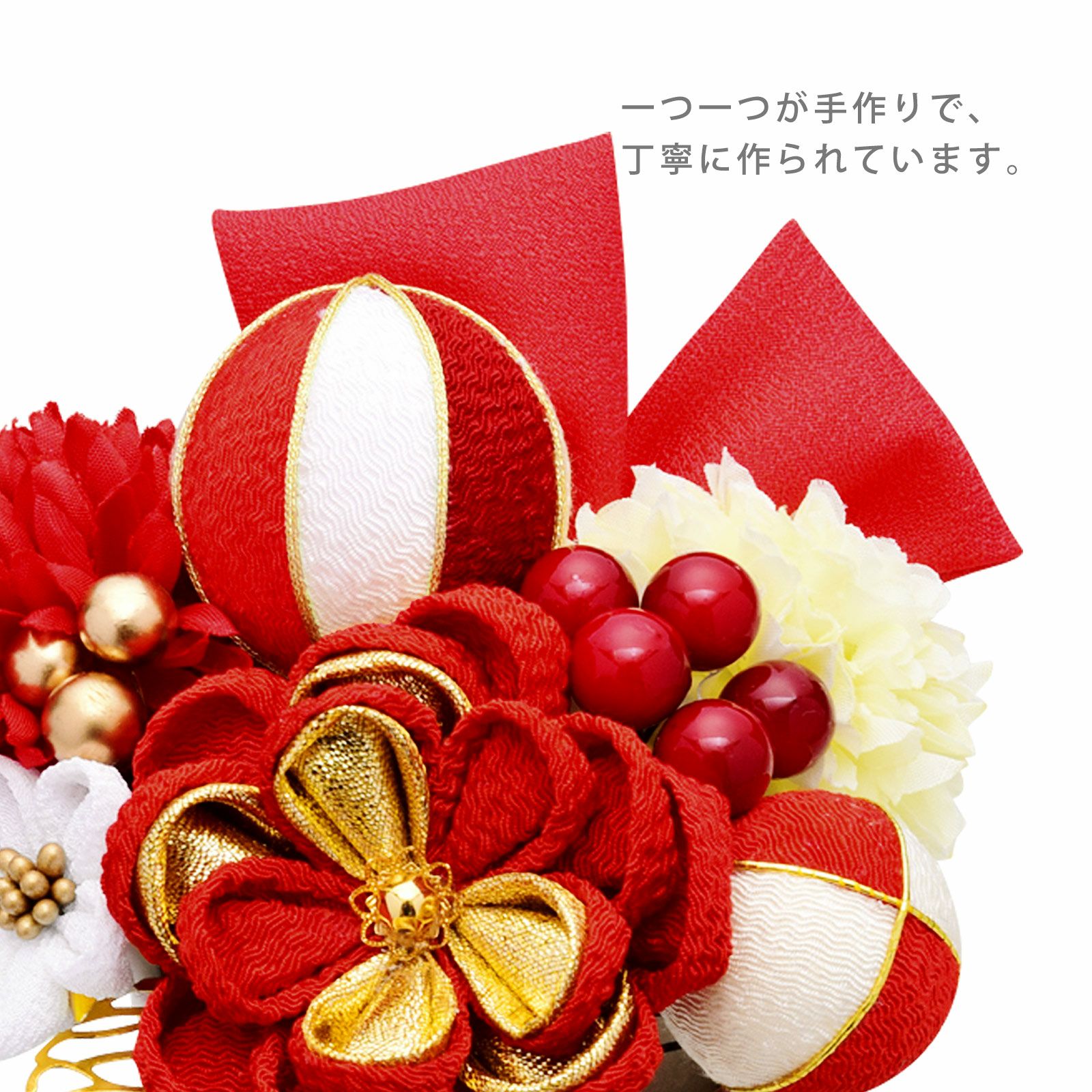 他の画像を見る 成人式の振袖に、卒業式の袴にも 華やかな振袖用髪飾り (卒業式応援75%SALE 2/19迄)髪飾り 成人式 花髪飾り コーム Uピン 2点セット 「お花と玉飾り、組紐 レッド No.54709」 振袖用髪飾り お花髪飾り つまみ細工 成人式 卒業式 結婚式 着物 日本製 【メール便不可】<H>ss2512wkk10 通常販売価格 ¥ 9,680 のところ きもの町価格 ¥ 8,228 税込 販売期間 2026/02/05 18:00 〜 2026/02/19 17:59 カートに入れる お気に入りに登録する