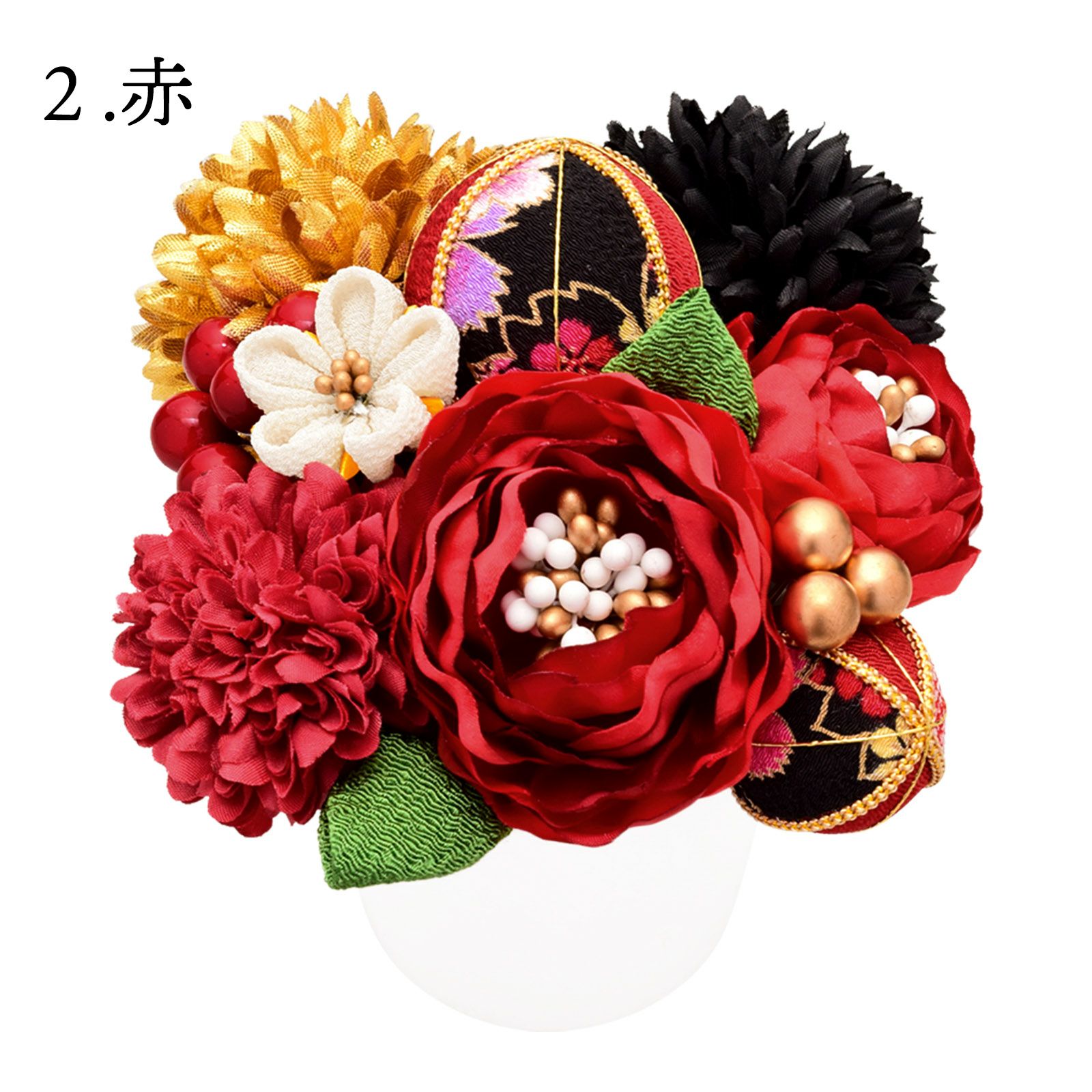 他の画像を見る 送料無料 成人式の振袖に、卒業式の袴にも 華やかな振袖用髪飾り (卒業式応援75%SALE 2/19迄)髪飾り 成人式 つまみ髪飾り Uピン 15点セット フラワーポット 「百花八重菊 赤・白・黒 Arenca No.8356」 振袖用髪飾り お花髪飾り つまみ細工かんざし 成人式 卒業式 結婚式 着物 日本製 【メール便不可】 通常販売価格 ¥ 14,300 のところ きもの町価格 ¥ 12,155 税込 販売期間 2026/02/05 18:00 〜 2026/02/19 17:59 カートに入れる お気に入りに登録する