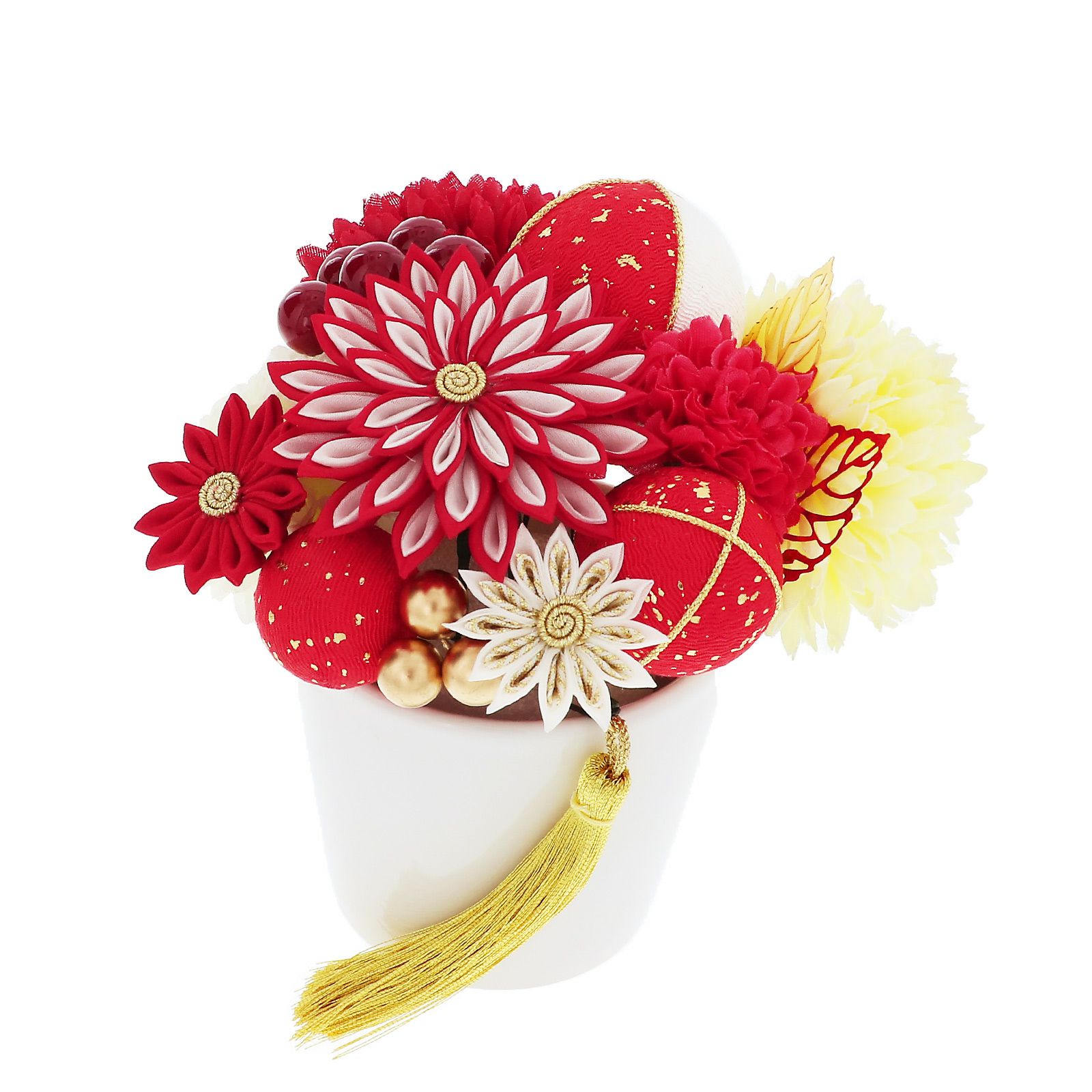 他の画像を見る 送料無料 成人式の振袖に、卒業式の袴にも 華やかな振袖用髪飾り (卒業式応援75%SALE 2/19迄)髪飾り 成人式 つまみ髪飾り Uピン 15点セット フラワーポット 「百花八重菊 赤 Arenca No.8356」 振袖用髪飾り お花髪飾り つまみ細工かんざし 成人式 卒業式 結婚式 着物 日本製 【メール便不可】<H> 通常販売価格 ¥ 14,300 のところ きもの町価格 ¥ 12,155 税込 販売期間 2026/02/05 18:00 〜 2026/02/19 17:59 カートに入れる お気に入りに登録する