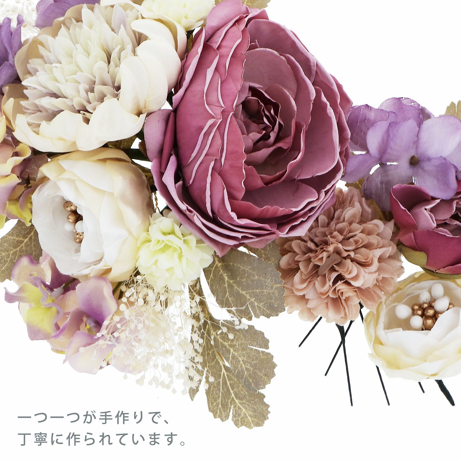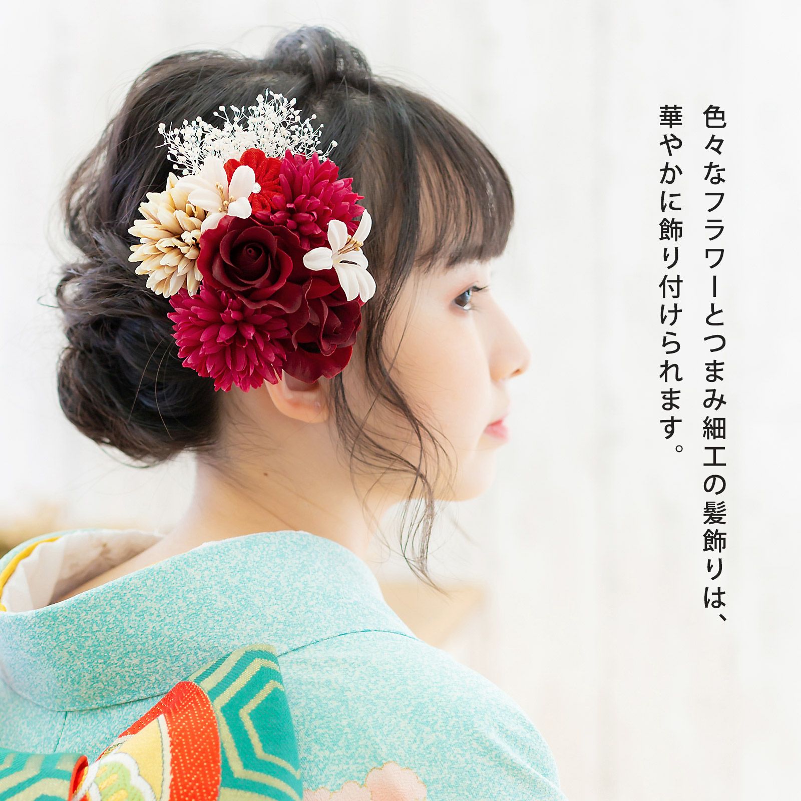 他の画像を見る 送料無料 成人式の振袖に、卒業式の袴にも 華やかな振袖用髪飾り (卒業式応援75%SALE 2/19迄)髪飾り 成人式 花髪飾り フラワーコーム Uピン 4点セット 「ラナンキュラスブーケ ワイン No.1335」 振袖用髪飾り お花髪飾り プリザーブドフラワー 成人式 卒業式 結婚式 着物 日本製 【メール便不可】<H> 通常販売価格 ¥ 12,100 のところ きもの町価格 ¥ 10,285 税込 販売期間 2026/02/05 18:00 〜 2026/02/19 17:59 カートに入れる お気に入りに登録する