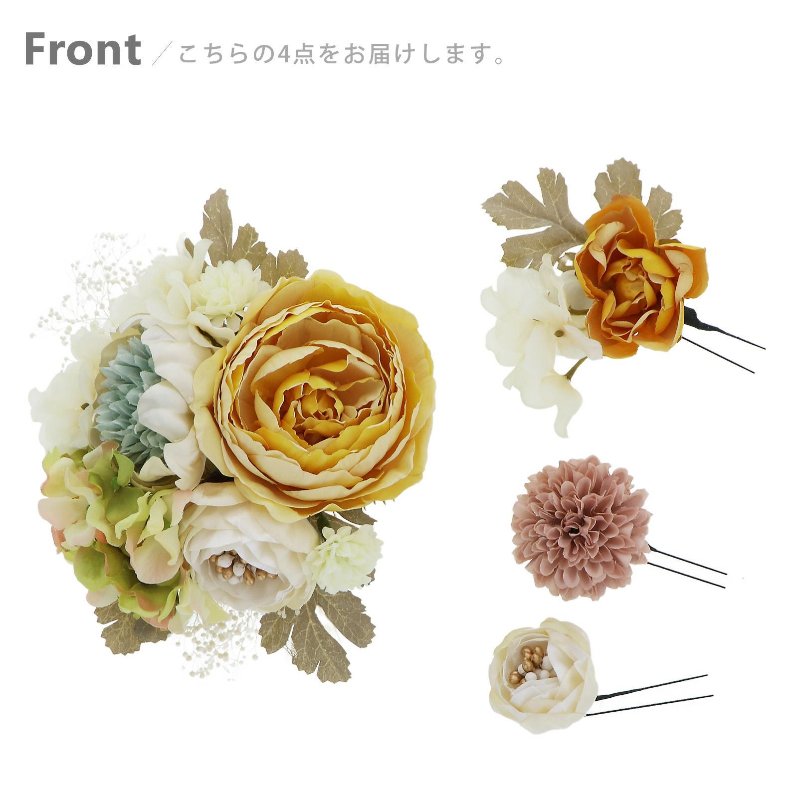 他の画像を見る 送料無料 成人式の振袖に、卒業式の袴にも 華やかな振袖用髪飾り (卒業式応援75%SALE 2/19迄)髪飾り 成人式 花髪飾り フラワーコーム Uピン 4点セット 「ラナンキュラスブーケ イエロー・ワイン No.1335」 振袖用髪飾り お花髪飾り プリザーブドフラワー 成人式 卒業式 結婚式 着物 日本製 【メール便不可】 通常販売価格 ¥ 12,100 のところ きもの町価格 ¥ 10,285 税込 販売期間 2026/02/05 18:00 〜 2026/02/19 17:59 カートに入れる お気に入りに登録する