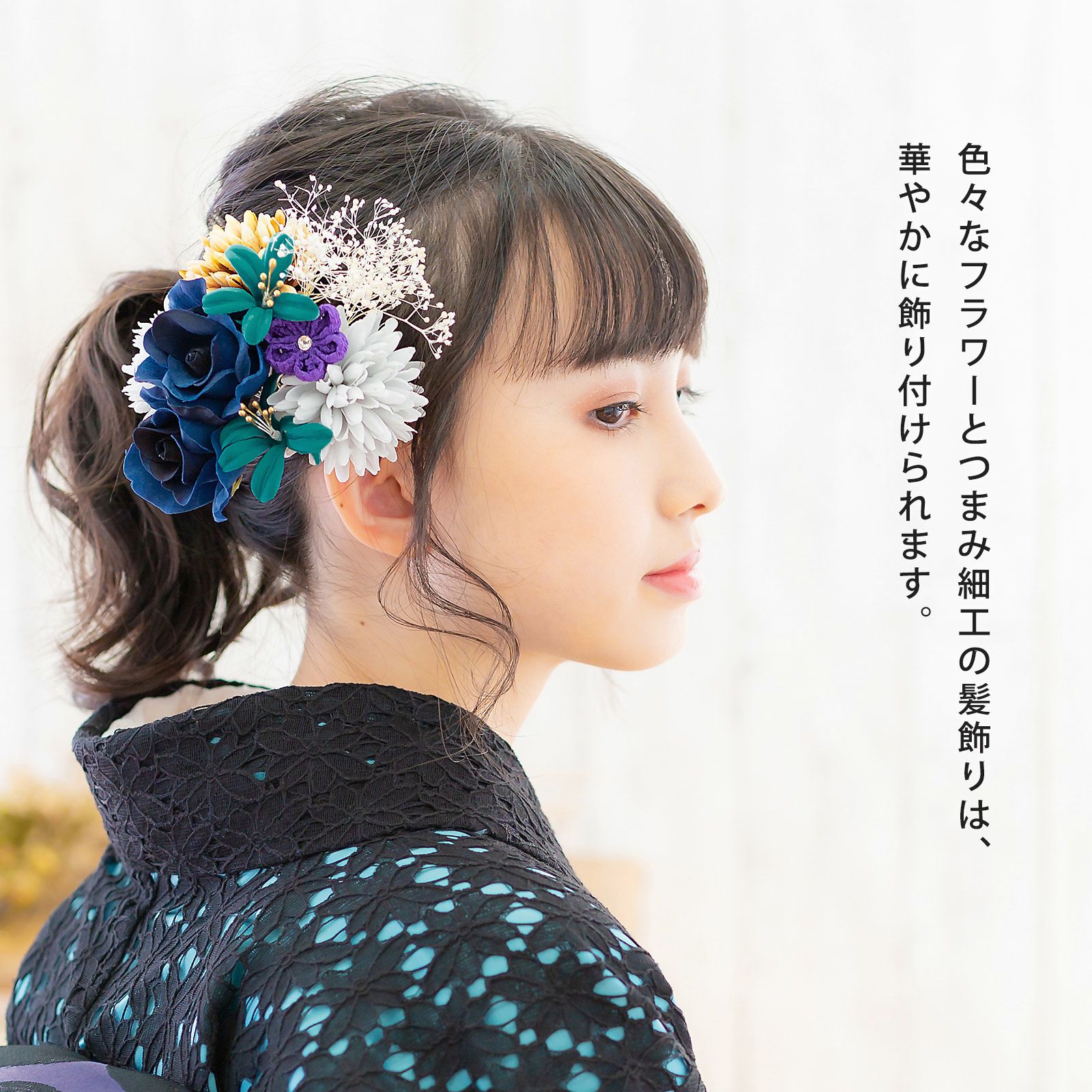 他の画像を見る 成人式の振袖に、卒業式の袴にも 華やかな振袖用髪飾り (卒業式応援75%SALE 2/19迄)髪飾り 成人式 花髪飾り コーム Uピン 2点セット 「ローズとリリー ナイトブルー No.55029」 振袖用髪飾り お花髪飾り つまみ細工 成人式 卒業式 結婚式 着物 日本製 【メール便不可】<H>ss2512wkk10 通常販売価格 ¥ 9,680 のところ きもの町価格 ¥ 8,228 税込 販売期間 2026/02/05 18:00 〜 2026/02/19 17:59 カートに入れる お気に入りに登録する