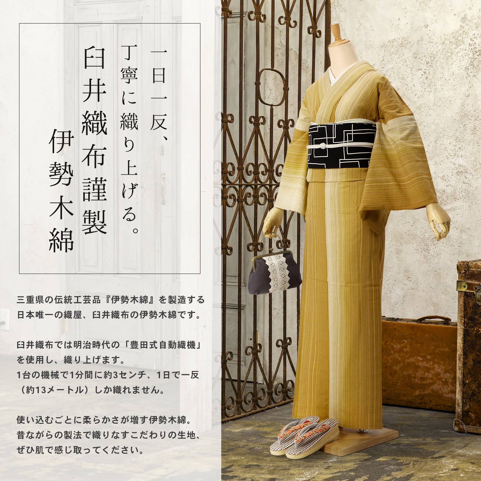 他の画像を見る 送料無料 やわらかく、どこかぬくもりが感じられる「伊勢木綿」のお仕立て上がり単衣着物 伊勢木綿 洗える着物 単品「滝縞 山吹茶×生成り色」お仕立て上がり 木綿きもの 日本製 三重県 伝統工芸品 単衣 綿 カジュアル チェック 小紋 レディース キモノ kimono【メール便不可】 きもの町価格 ¥ 45,100 税込 カートに入れる お気に入りに登録する