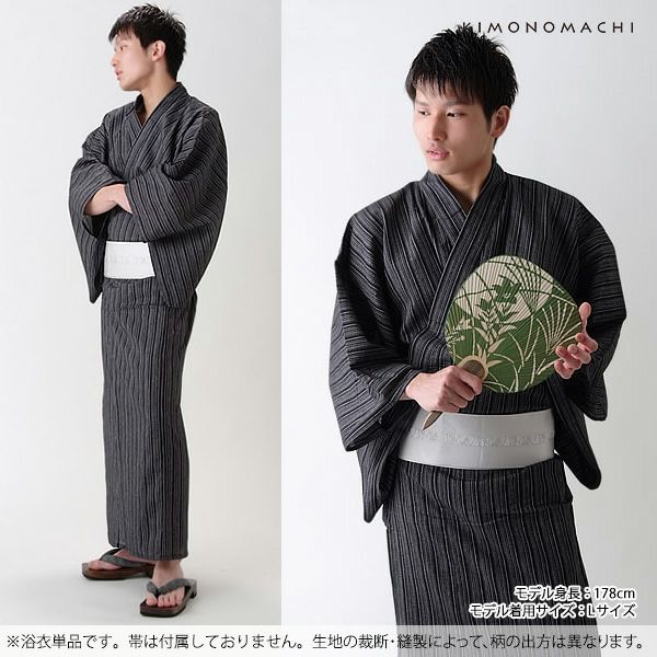 柄が粋でカッコイイ 男性浴衣 男性 浴衣単品「墨黒縞」S、M、L、LL、3L、4L、5L 綿麻浴衣 男性用浴衣 しじら浴衣 【メール便不可】