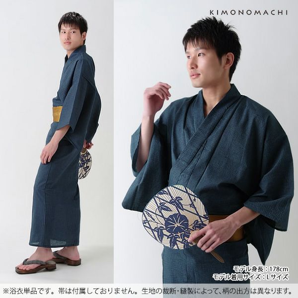 柄が粋でカッコイイ 男性浴衣 男性 浴衣単品「黒藍縞」S、M、L、LL、3L、4L、5L 綿麻浴衣 男性用浴衣 しじら浴衣 【メール便不可】