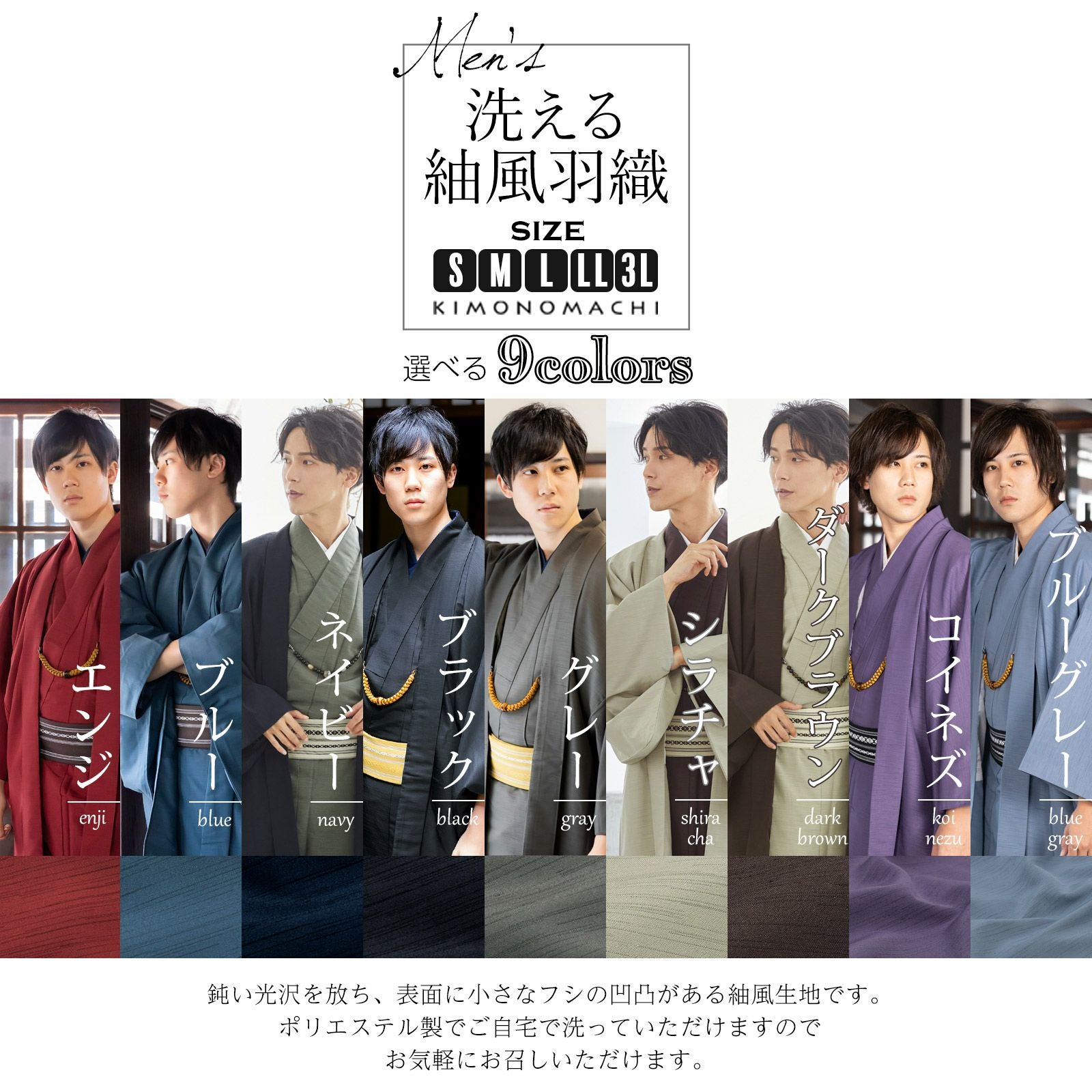 他の画像を見る メディア掲載 紬風のお洒落な男性羽織 男性羽織単品「エンジ/ブルー/ネイビー/ブラック/グレー/シラチャ/ダークブラウン/コイネズ/ブルーグレー」S、M、L、2L、3L 男性羽織 無地 洗える羽織 【メール便不可】 きもの町価格 ¥ 7,150 税込 カートに入れる お気に入りに登録する